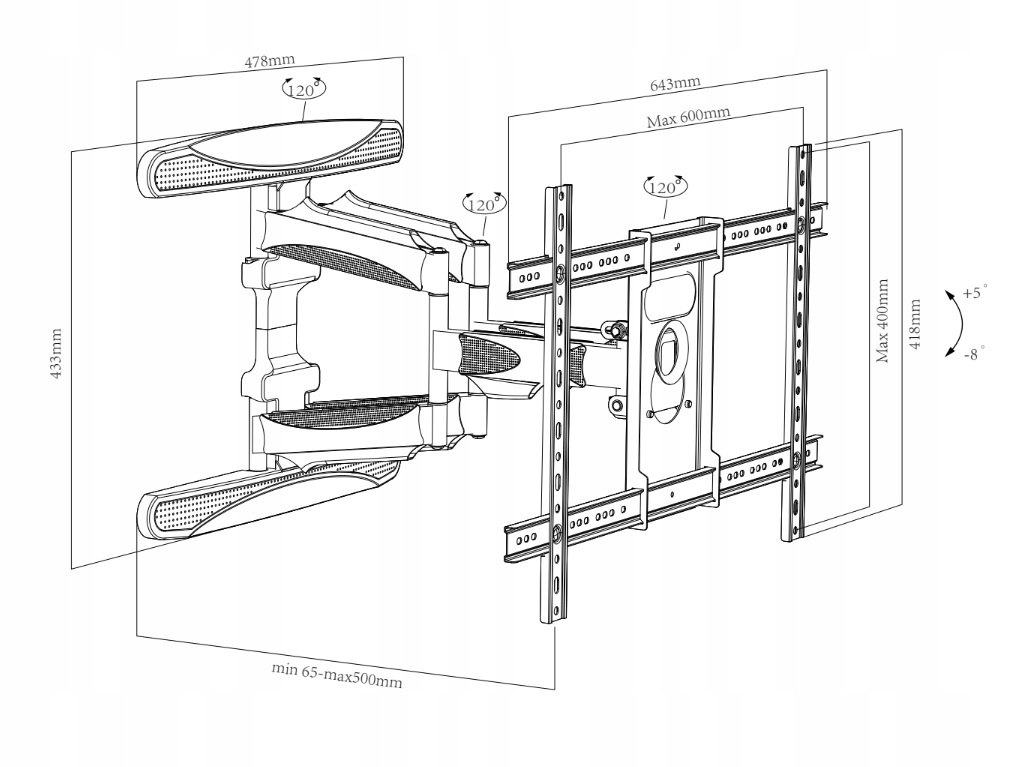 стены, в то время как в то же время дает широкий спектр регулирования. Universality - широкий диапазон стандарта VESA и высокая грузоподъемность делает ручку подходит для большинства современных телевизоров.