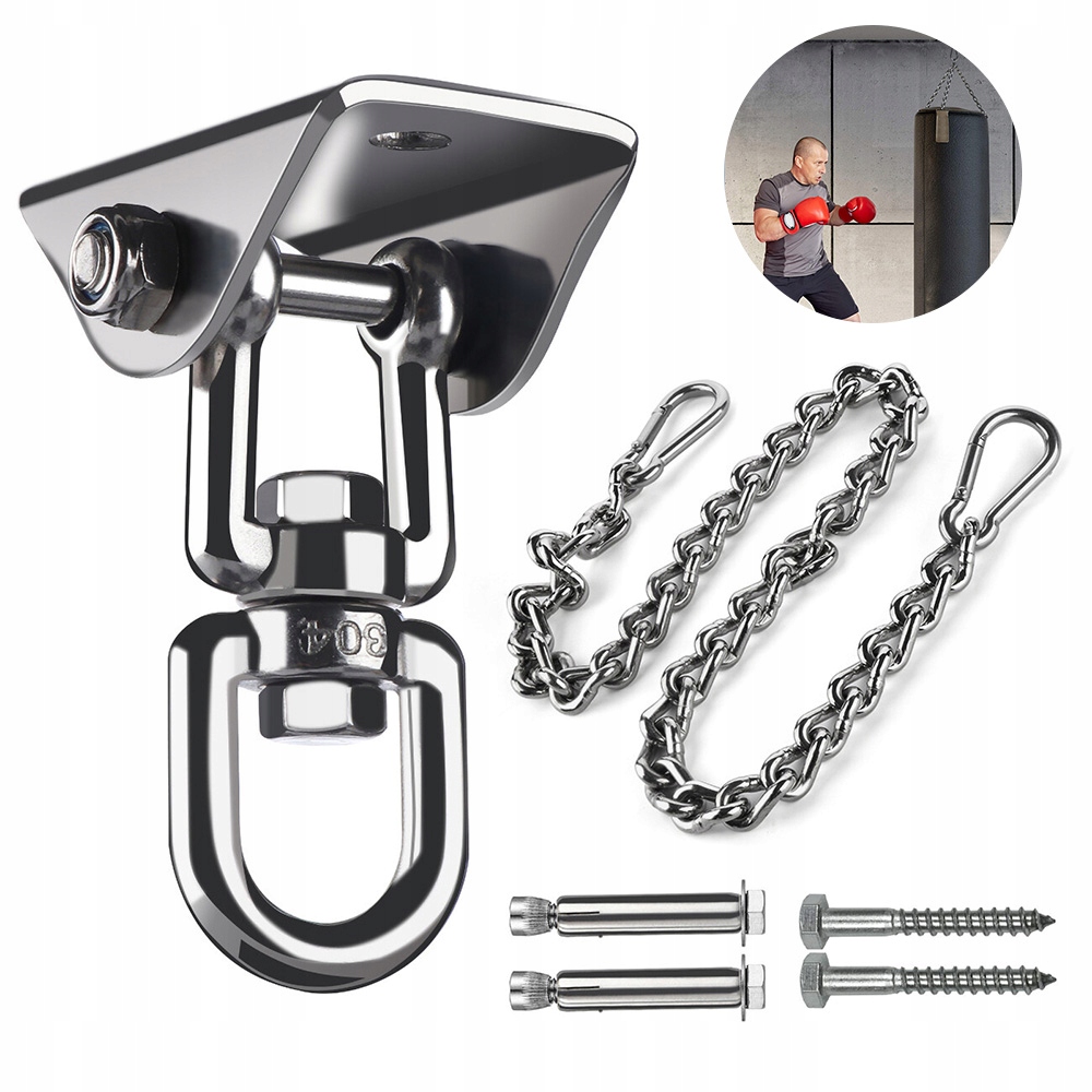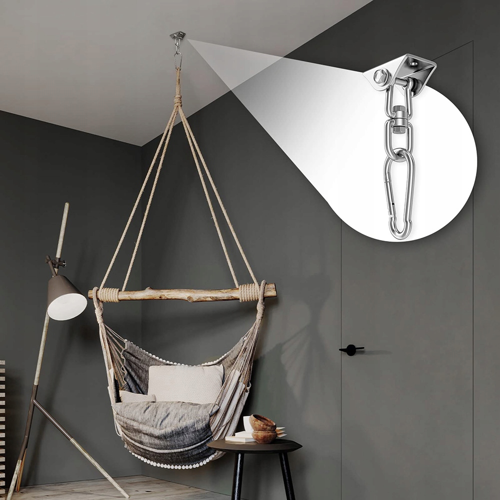 ПРОЧНЫЙ ПОТОЛОЧНЫЙ КРЮК 400 КГ ДЛЯ ГАМАКА, ВРАЩАЮЩИЙСЯ НА 360°, КОМПЛЕКТ НЕРЖАВЕЮЩЕЙ СТАЛИ 304