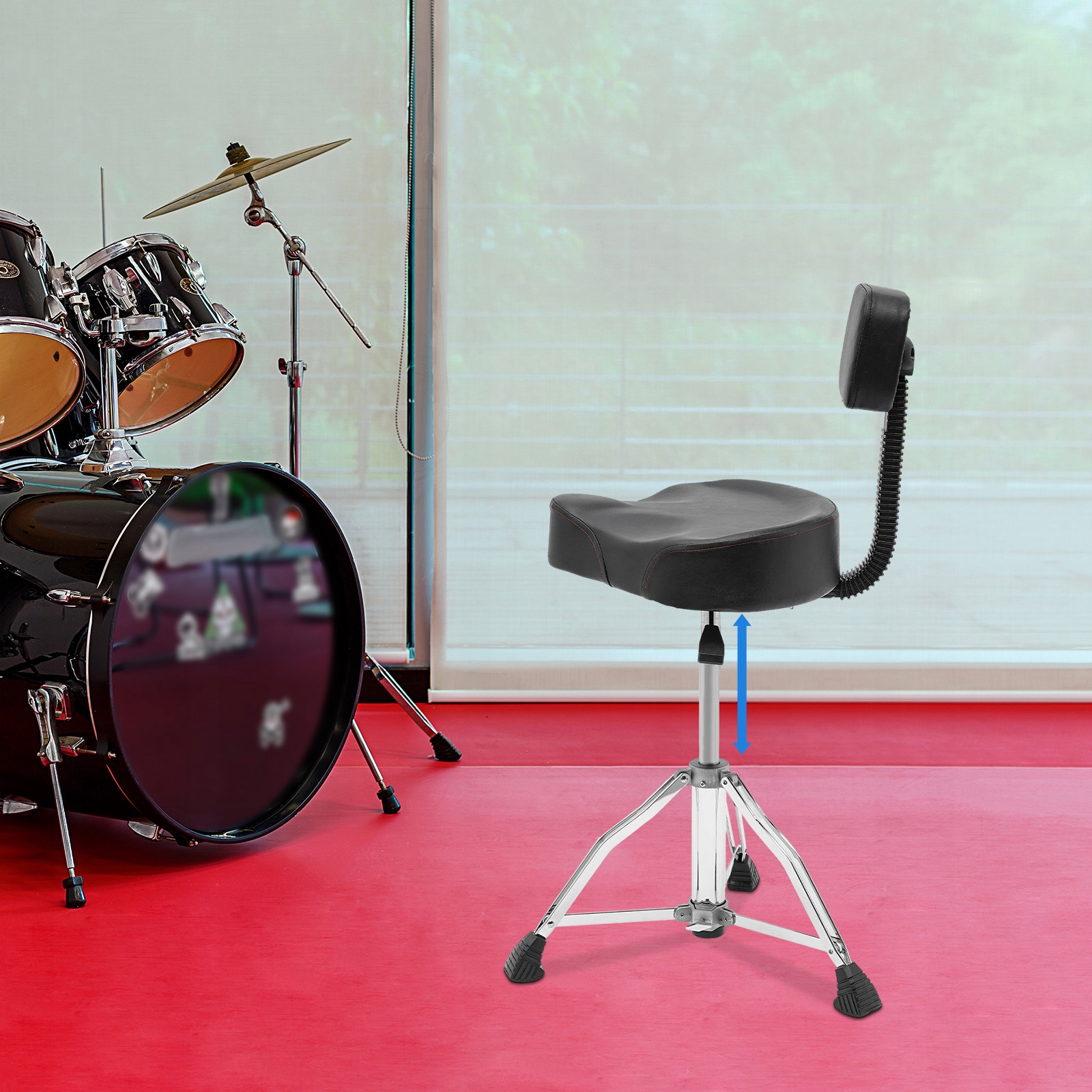 ПРОЧНЫЙ И УДОБНЫЙ СТУЛ ДЛЯ БАРАБАННЫХ, РЕГУЛИРУЕМАЯ ВЫСОТА, С ПЕНОЙ С ПАМЯТЬЮ ПАМЯТИ.
