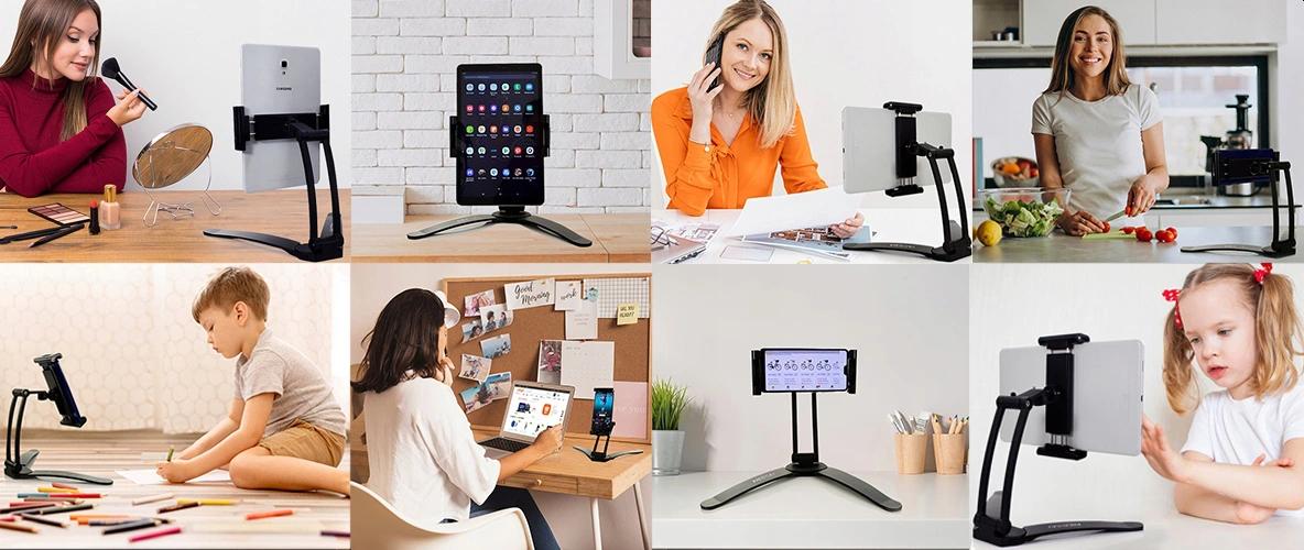 На работе, дома, в офисе, на кухне, во время чтения электронных книг, готовки, просмотра фильмов, проверки электронной почты, пока дети смотрят мультфильмы. Держатель отлично стабилизирует большой телефон или планшет. Мы прекрасно знаем, что когда дети пользуются нашим телефоном, может произойти небольшая неприятность. Держатель надежно и устойчиво удерживает телефон. Штатив заставляет вас сидеть правильно.