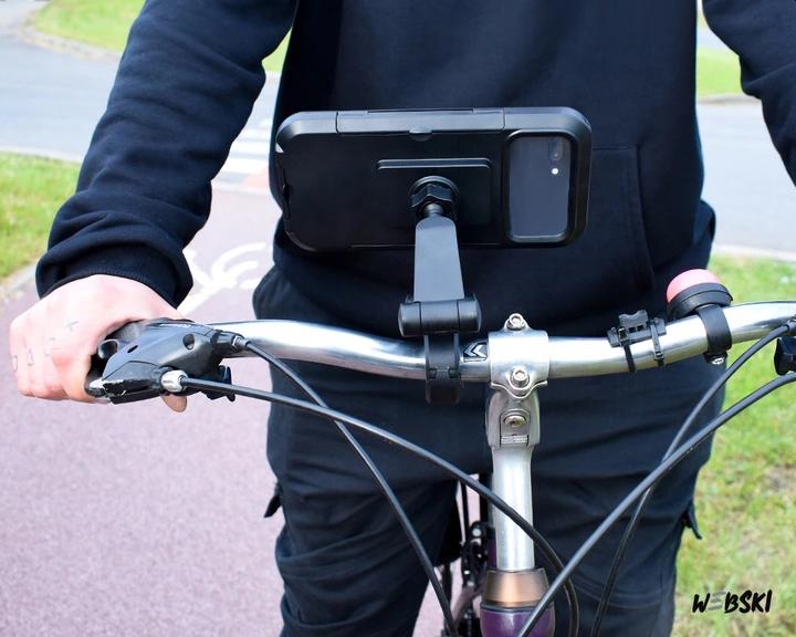 Держатель имеет специальную систему и конструкцию, поглощающую вибрации и удары телефона во время вождения. Ваш телефон будет в безопасности благодаря этой системе, а чехол дополнительно оснащен магнитным элементом, который гарантирует, что он не сдвинется с места при интенсивной езде.