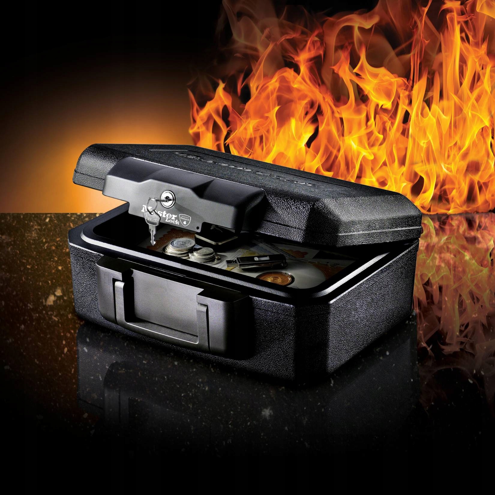 Огнестойкий чемодан Masterlock L1200 сохранит ваши драгоценные вещи в сохранности в случае пожара до 30 минут при температуре до 843˚C! Противопожарная защита соответствует стандарту UL, как показано в сертификатах ниже.