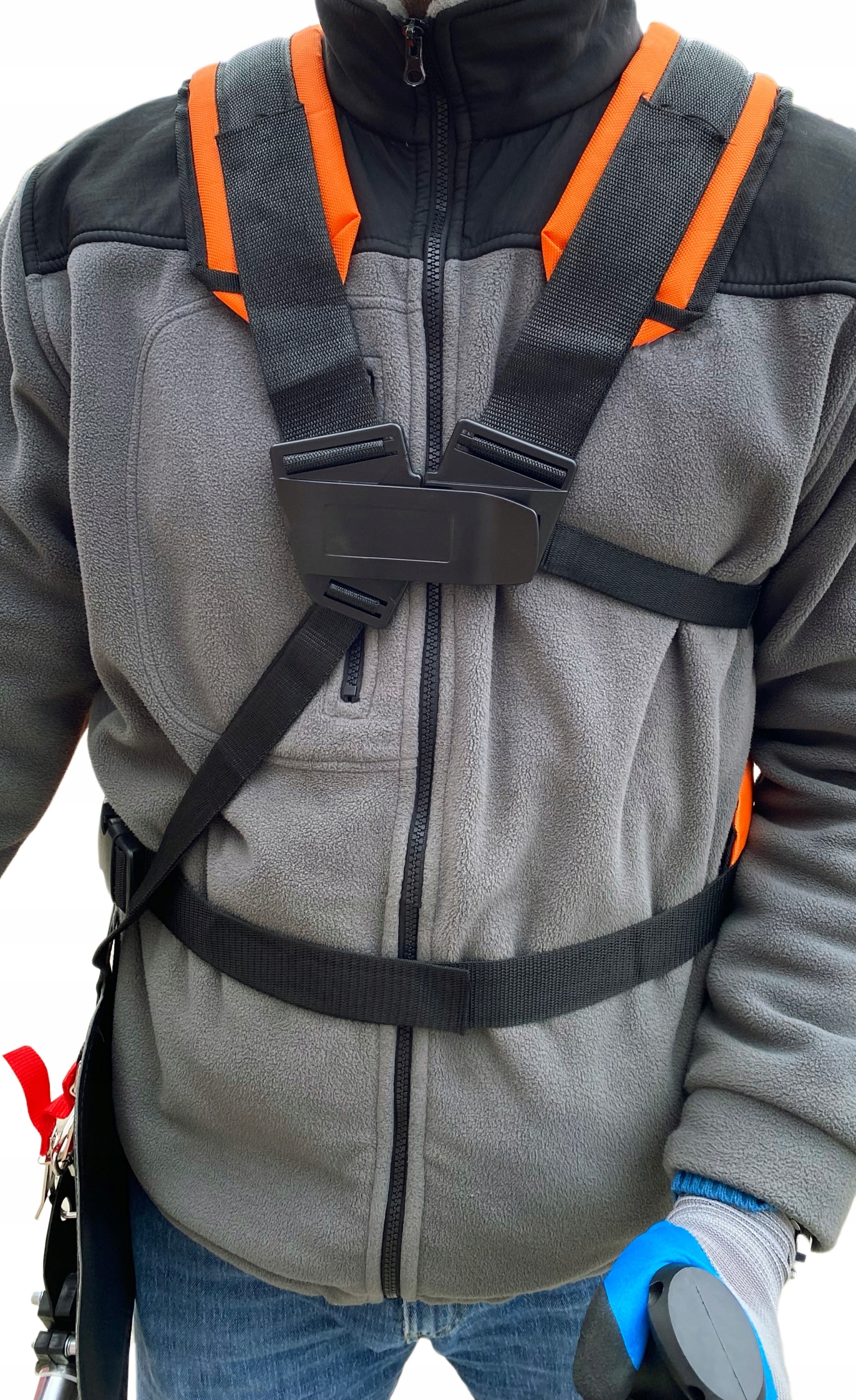 Привязь оснащена металлическим крючком для быстрой установки косы с фиксатором - это обеспечивает безопасность и комфорт работы!