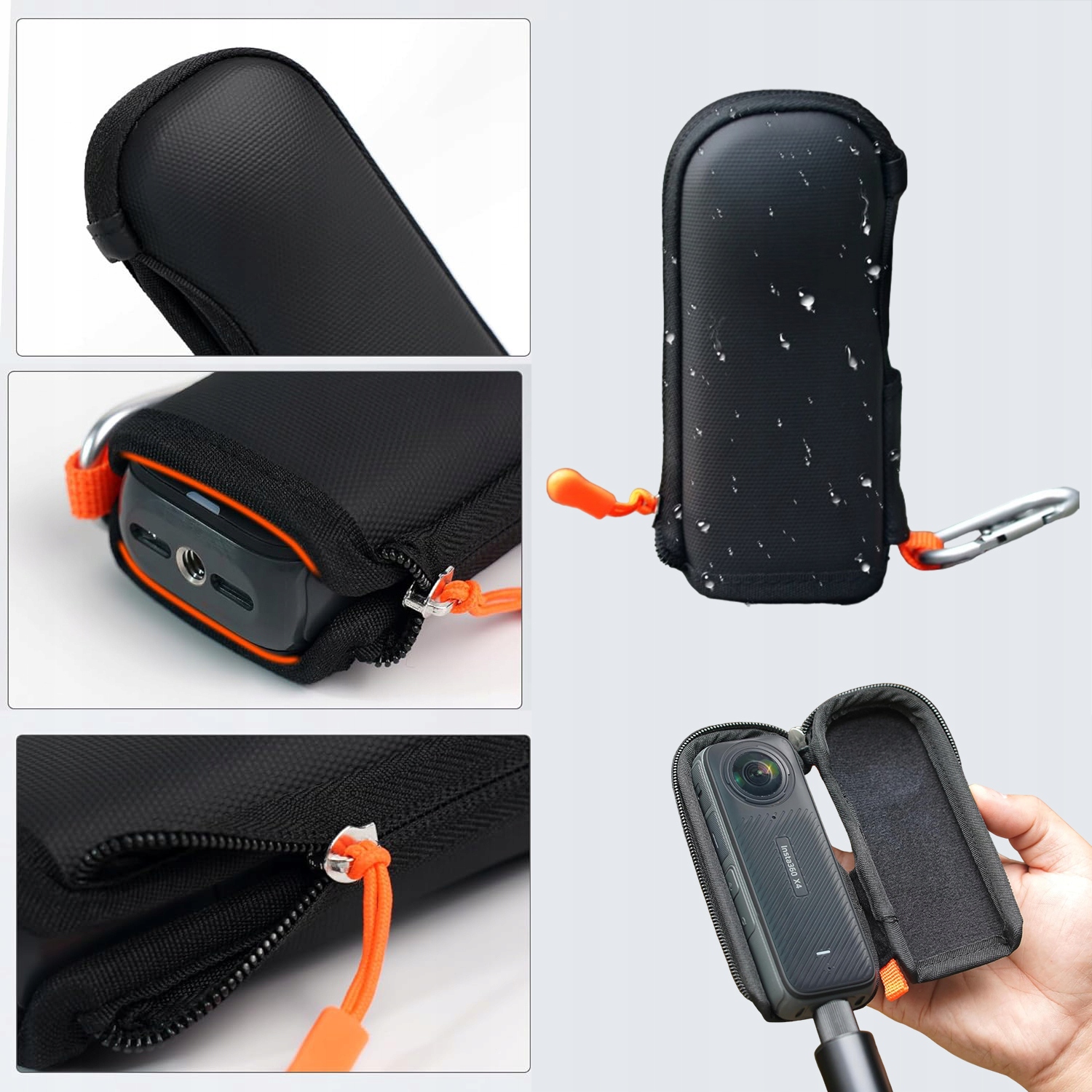 - Это случай x4, который служит двум целям, служащий как ящик для хранения и защитный случай. Только водонепроницаемый, но также имеет стильный черный рисунок с наклонным плетением, что делает его стильным выбором для хранения спортивной камеры Insta360 X4.