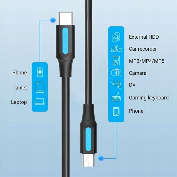 Кабель Vention USB-C/Micro-B позволяет выполнять оба действия одновременно — и с впечатляющей скоростью.