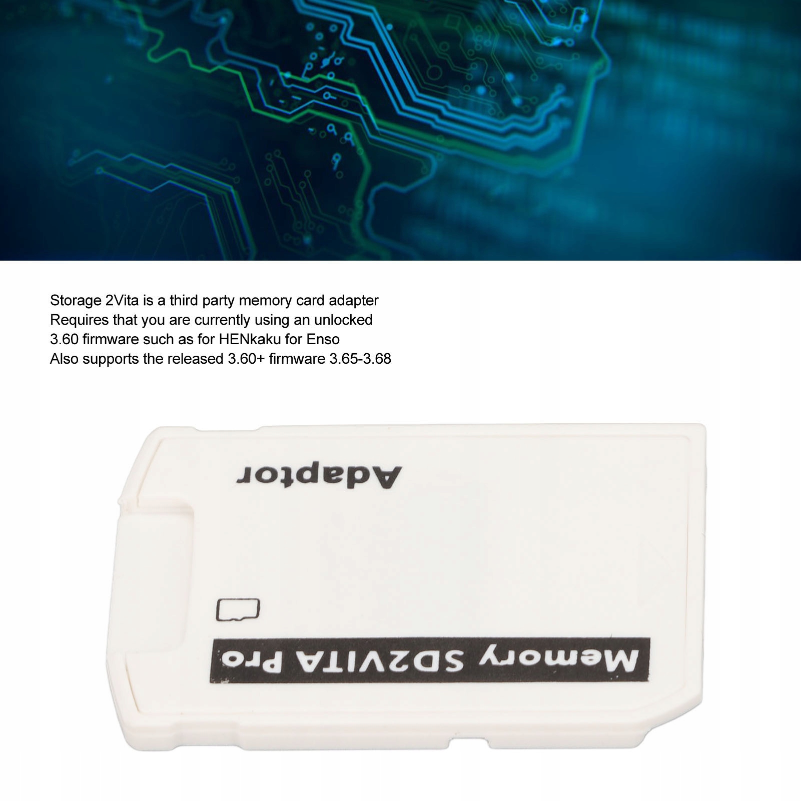 4. Адаптер карты памяти: 2vita card Adapter-это адаптер карт памяти другой компании, которая в настоящее время требует использования разблокированной прошивки 3,60, таких как Henkaku для ENSO, а также поддерживает выпущенную прошивку 3.60+ 3.65-3.68.