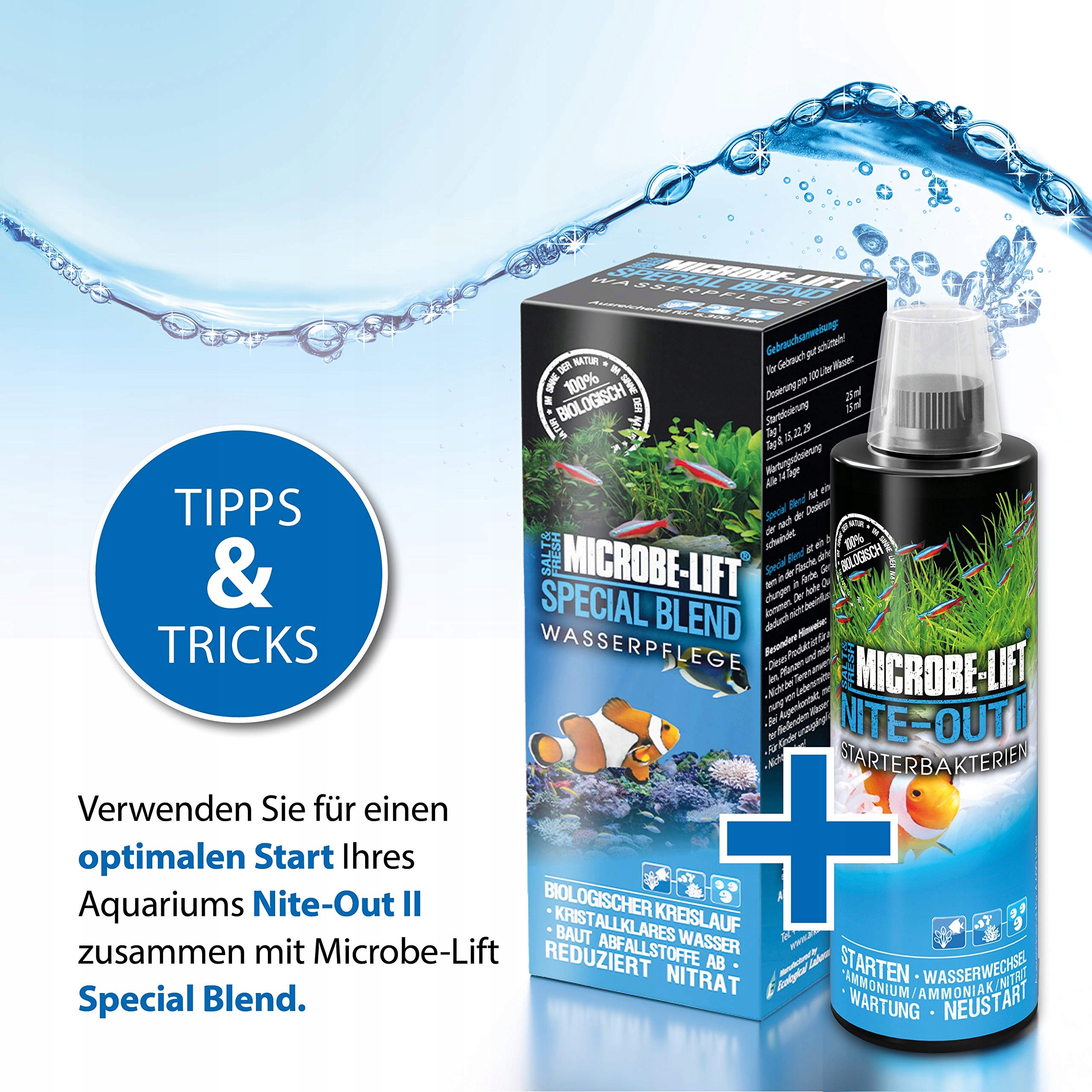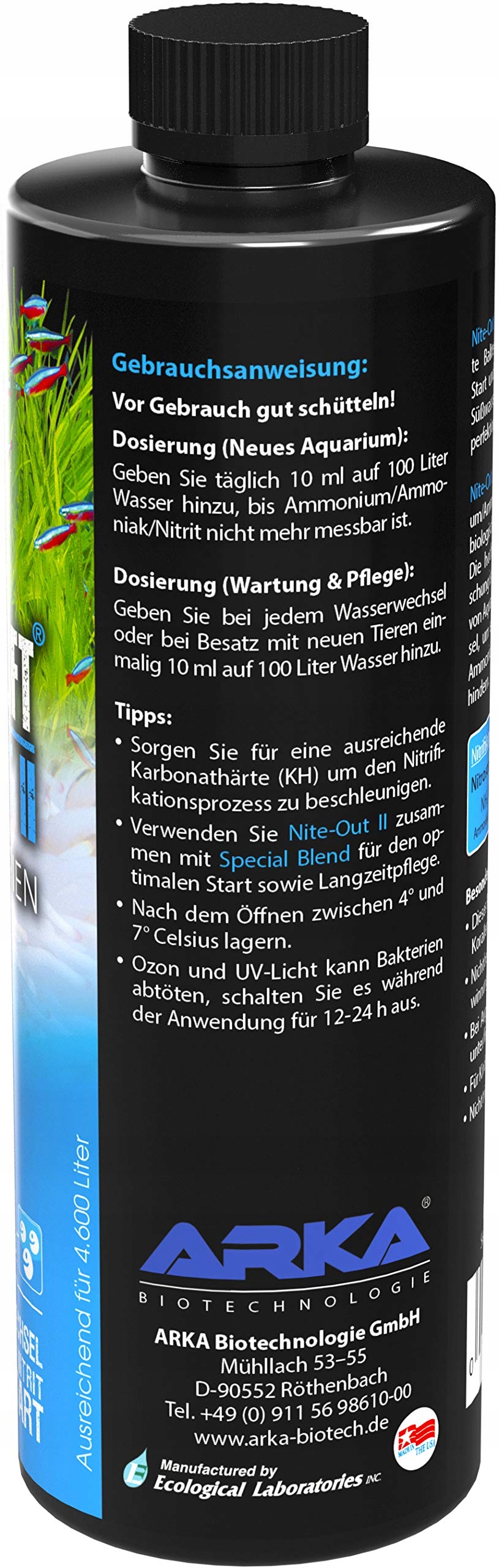 Быстрое и безопасное начало аквариума с соленой и сладкой водой, растениями и кораллами должны ощущаться как в аквариуме, а также в их естественной среде. Однако не каждая вода сразу же подходит для рыбы и растений, потому что в воде из крана или осмотической воды отсутствует сбалансированное соотношение здоровых бактерий. Без бактериального стартера это означает еженедельную фазу начала, в которой биология в аквариуме образуется неконтролируемым способом, прежде чем вы сможете заполнить их животными. У нас есть решение для вас, благодаря тому, что ваш аквариум будет сразу же биологически активен и в контролируемом манере и станет безопасной и оптимальной средой обитания для ваших растений и рыбы с первого дня: Microbe-Lift Nite-Oit II начинается сразу после добычи с аммией, аммиаком и нитритами. Таким образом, вы можете купить свой аквариум с морской водой в начале кораллов и через несколько дней рыбы. Благодаря Nite-Out II, пресноводные аквариумы могут быть заполнены растениями и рыбой в начале. Чтобы получить наилучший старт в аквариуме, используйте Nite-Out II из специальной смесью Microbe-Lift. Радость аквариума начинается для вас и ваших жителей в первый день! Nite-Out II безопасно использовать для каждого моря и пресноводного аквариума благодаря специальной формуле. Nite -out II обеспечивает устойчивую функцию нитрификации: Amon/Ammoniac -> нитрит -> живые нитраты бактериальных штаммов, содержащихся в Nite -out II, начинают работать сразу после введения, и не нужно сначала развиваться. Вместе со специальной смесью Microbe-Lift, это позволяет безопасному началу аквариума. Nite-Out II содержит только чисто органические ингредиенты, что делает его безопасным для использования в каждом аквариуме.