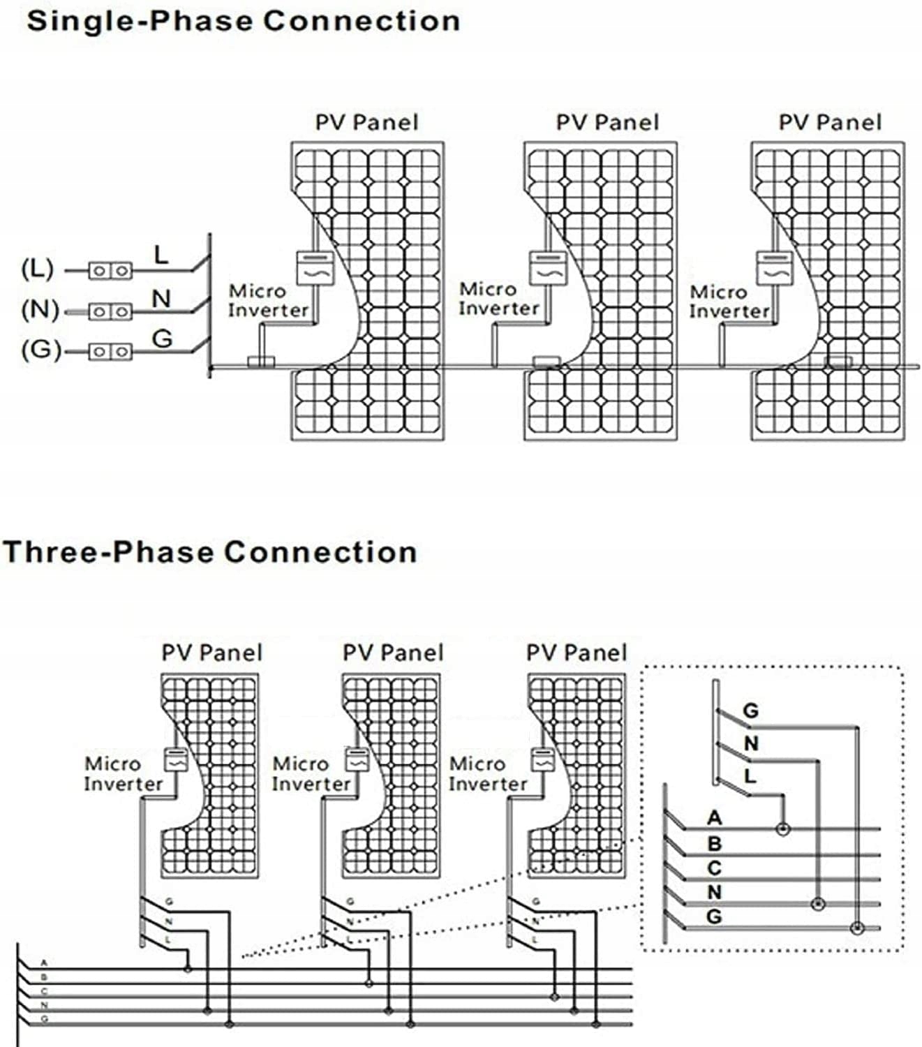 - 【Гибкая установка】 Для удовлетворения требований к более высокой мощности солнечный микронветер поддерживает множественную параллельную укладку, глобальную самопознанию / частотный самоконтроль, неограниченное количество стеков и может создать однофазную параллельную параллельную систему. (поддерживает одно -фазу или три -фазу)