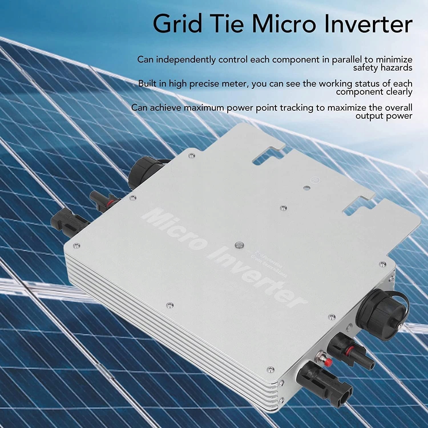 - 【Инвертор, подключенный к солнечным сетям】 Микроинветер, подключенный к солнечной сети, предназначен для превращения электричества солнечной панели в полезное электричество. Поддержка автоматической идентификации напряжения 120/230 В переменного тока. Инвертор может собирать реальные данные, используя интеллектуальную систему мониторинга
