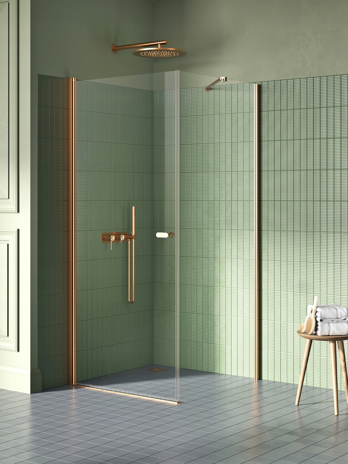 Новые душевые кабины SOLEO характеризуются инновационной отделкой цвета матовой меди отделка б>что придает им неповторимый стиль.