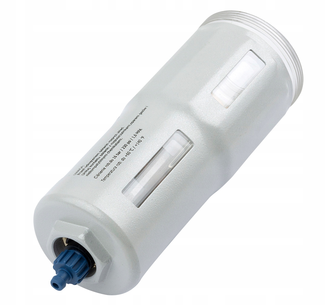 Контейнер позволяет вам разделять влагу, но также конденсат и другие твердые частицы. Контейнер оснащен ручным спусканием конденсата, благодаря которому можно опустошить накопленный контент.