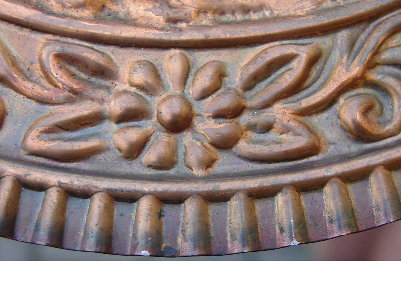 Утилита имеет локально обесцвечивание и незначительные царапины. Медь покрывает рейд старой патины.