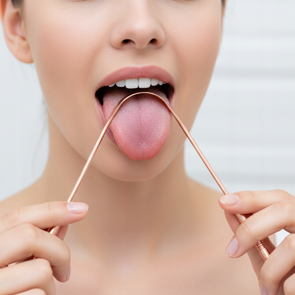 Медный очиститель языка, который поможет удалить налет и обеспечить свежесть дыхания.