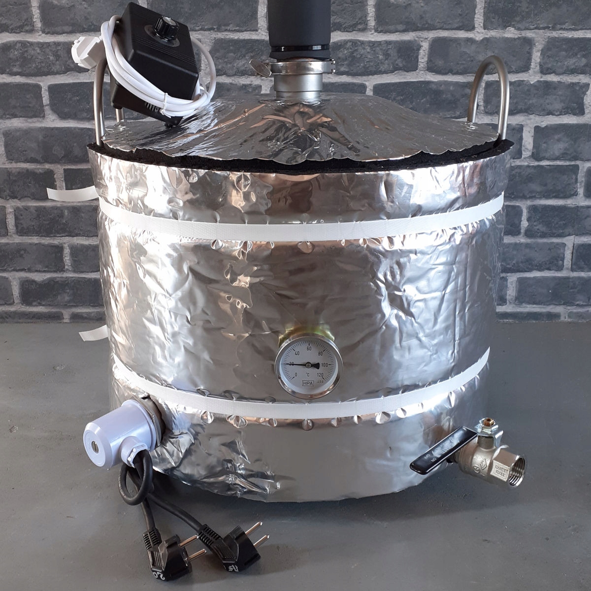 Котел оснащен 1-дюймовым сливом жидкости. Изолирован резиновым ковриком (K-Flex 10 мм) с наружным защитным алюминиевым слоем. Изоляция котла: