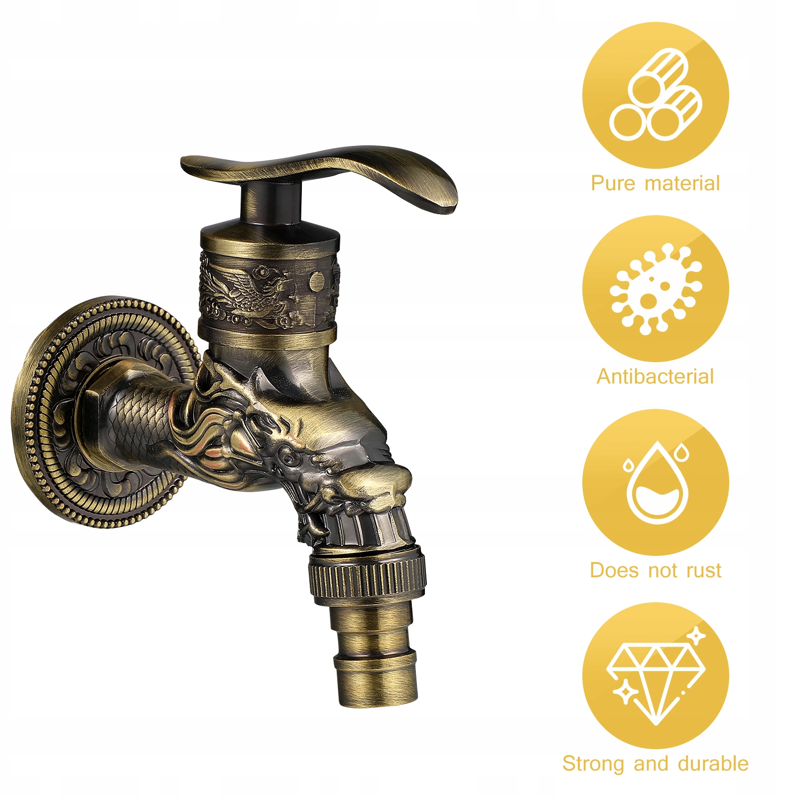 Если вы ищете практическое и недорогое включение, ваш поиск здесь. Это потому, что древний крана может удовлетворить ваши потребности. Сделанный из сплавного материала высочайшего качества, он прочный и долговечный. Легко установить. Винтажный стиль работает в каждом дизайне интерьера. Подходит для дома, отеля, офиса и многих других.