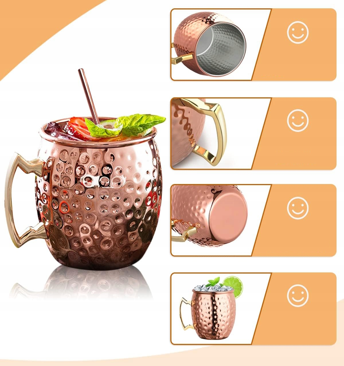 Кружки с сложной медной поверхностью имеют блестящий, элегантный вид в винтажном стиле. Значители коктейлей и поклонников замороженных напитков подойдут. Каждая медная кружка также является красивым украшением, где бы она ни находилась.