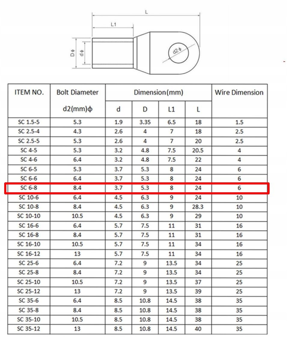 Медный разъем медного разъема SC6-8 M6 5 ПК