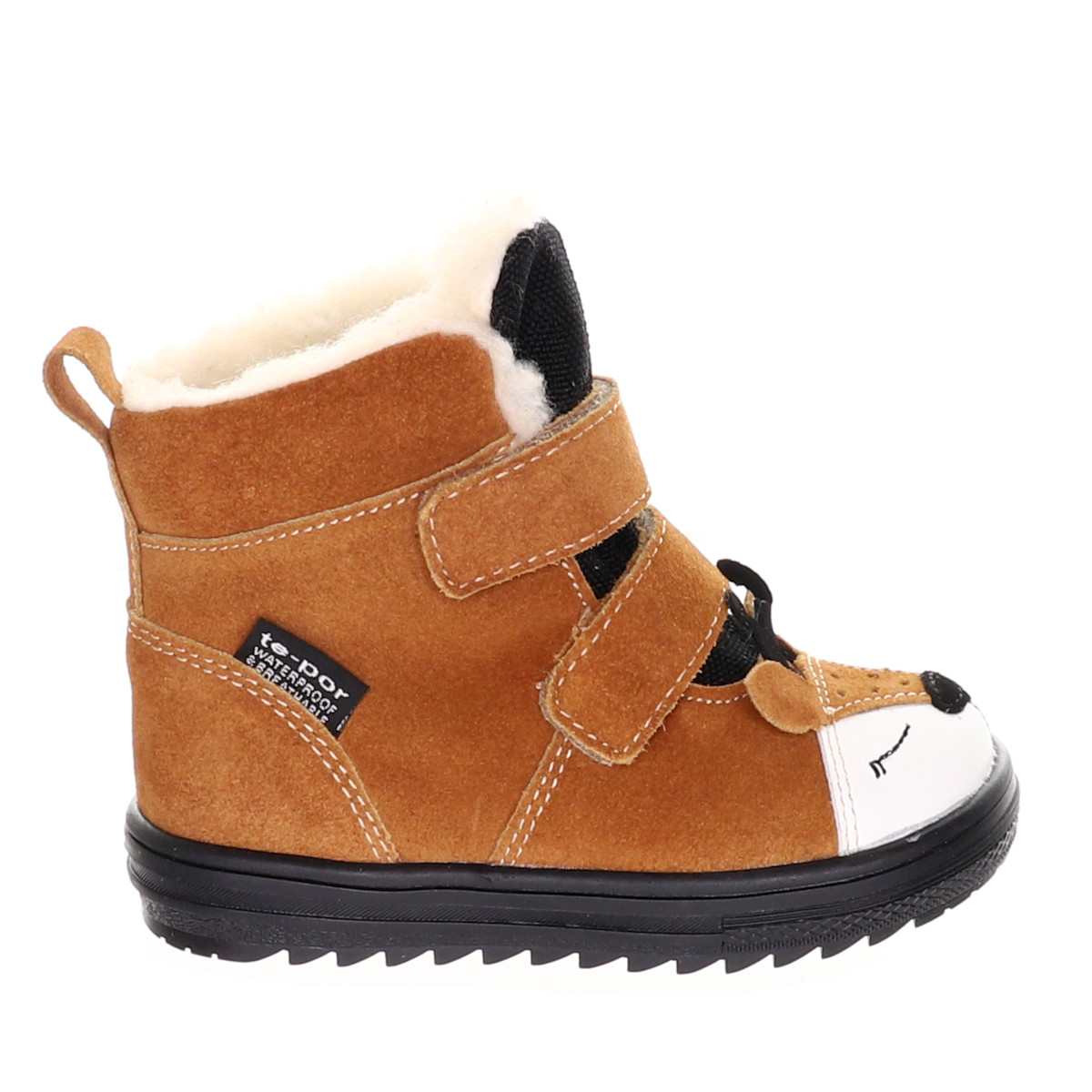 Очень практичная зимняя обувь. Имеет водонепроницаемую и дышащую мембрану TE-POR. Мембрана TE-POR — это уникальная технология с новейшим решением, ее структура обеспечивает свободное удаление излишков водяного пара изнутри обуви, а также предотвращает проникновение влаги из окружающей среды. Благодаря своим свойствам позволяет ногам «дышать», сохраняя ощущение свежести и сухости. Он также устойчив к загрязнениям, засорению грязью, пылью и маслянистыми веществами. Уникальный дизайн в сочетании с превосходным качеством изготовления создают замечательную обувь, которая нравится малышам. Две застежки-липучки гарантируют легкое и быстрое надевание, имеют жесткий задник и удобные фетровые вставки.