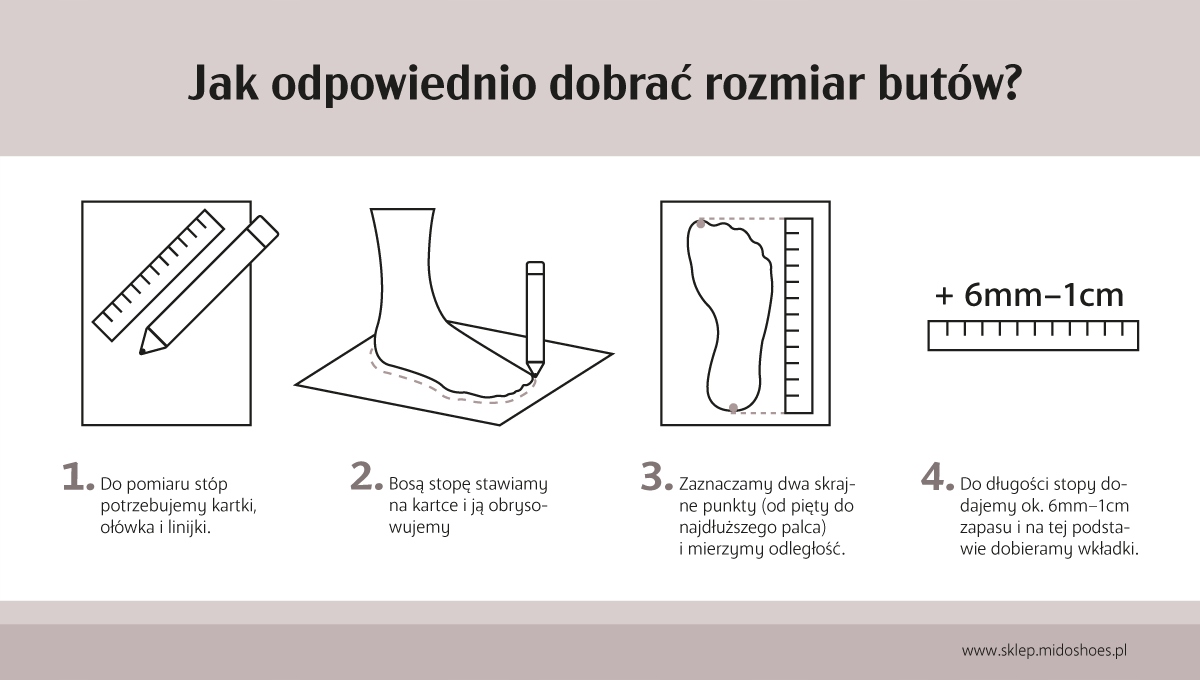 Стельки в нашей обуви съемные, поэтому вы можете поместите на них ноги ребенка, чтобы оценить, подходит ли размер. Стоит выбирать обувь из рекомендованного запаса, она прослужит вашему ребенку на протяжении всего сезона. Время от времени мы предлагаем проверять актуальность размера и проводить измерения еще раз. Детские стопы могут расти очень быстро, а ношение слишком маленькой обуви может, среди прочего, привести к: деформации стоп.