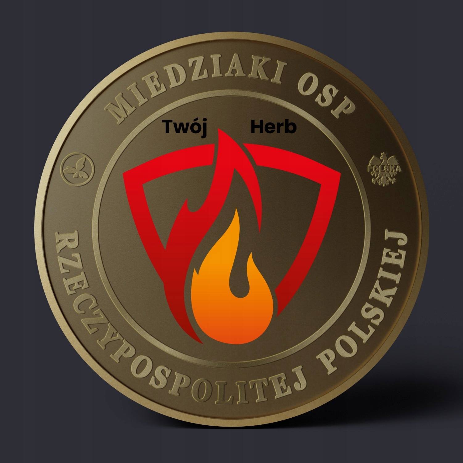 На аверсе Мидзиака есть постоянные избитые элементы в виде надписи добровольной пожарной бригады Мидзияка или медной из Республики Польши, в то время как оставшаяся часть Мидзиака будет покрашена в соответствии с вашими пожеланиями. Это может быть герб устройства, название места, год творения или то, что вы хотите.