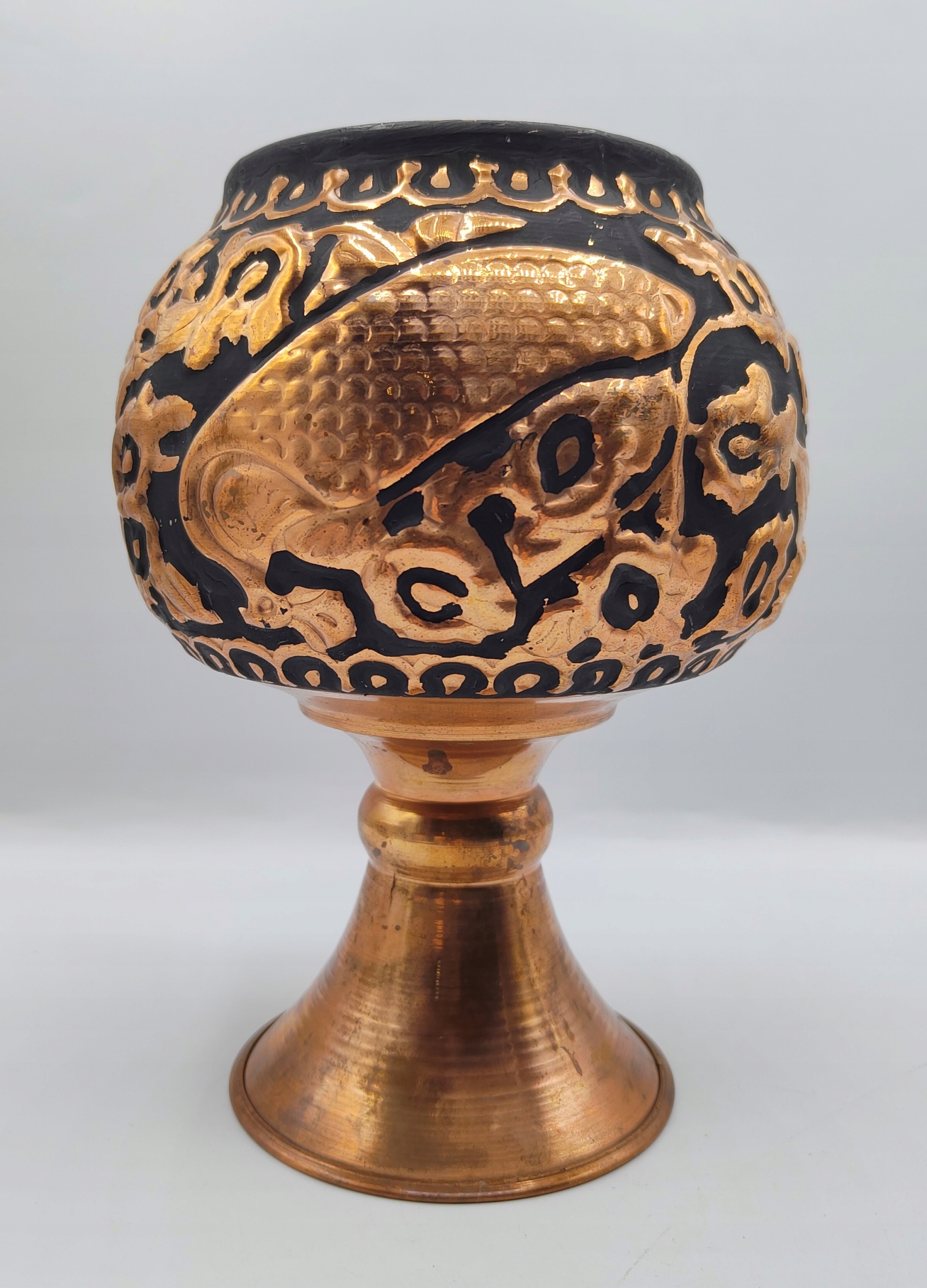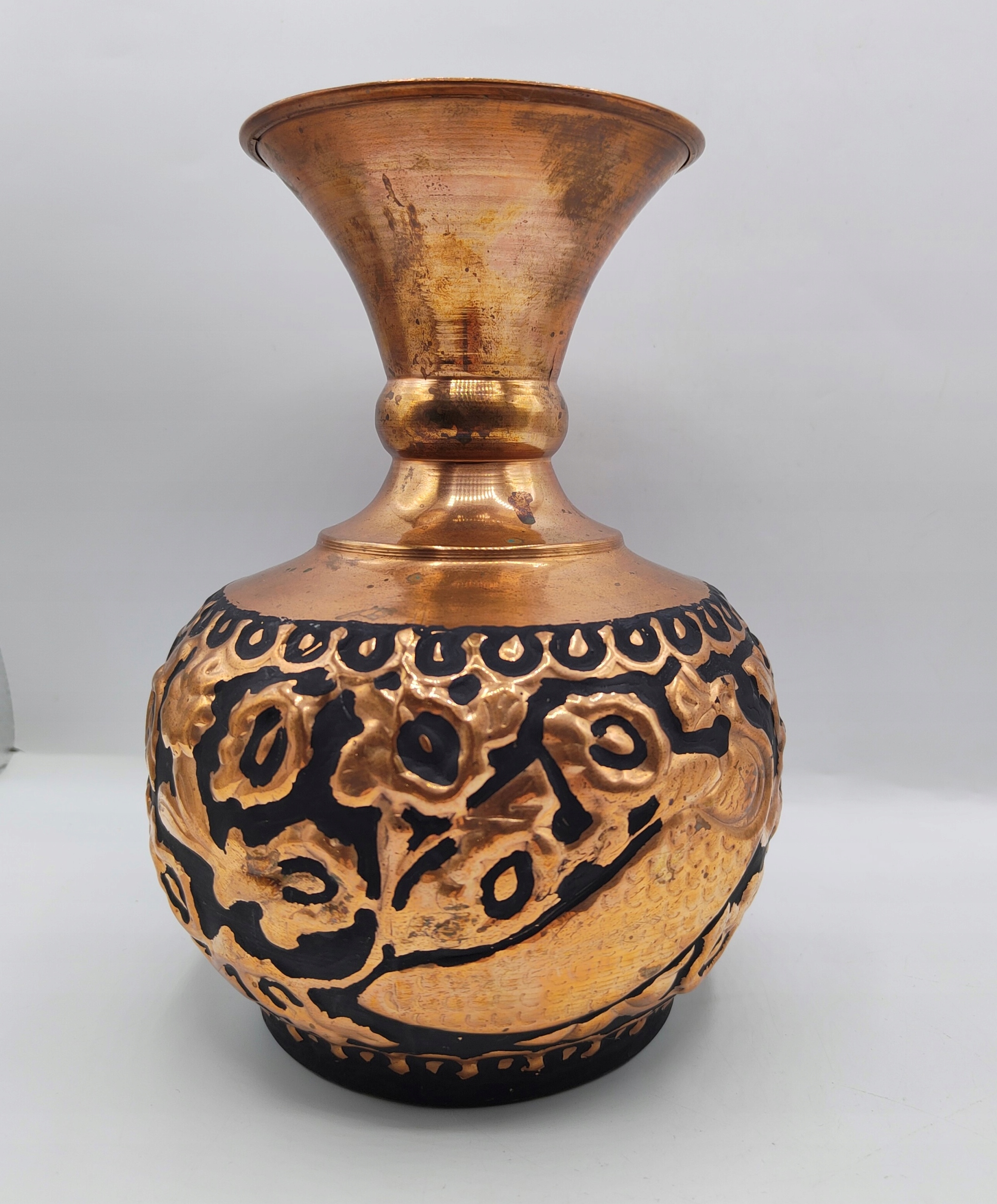 Miedziany Stary WAZON ptaki PAWIE SZCZELNY 22cm 2L