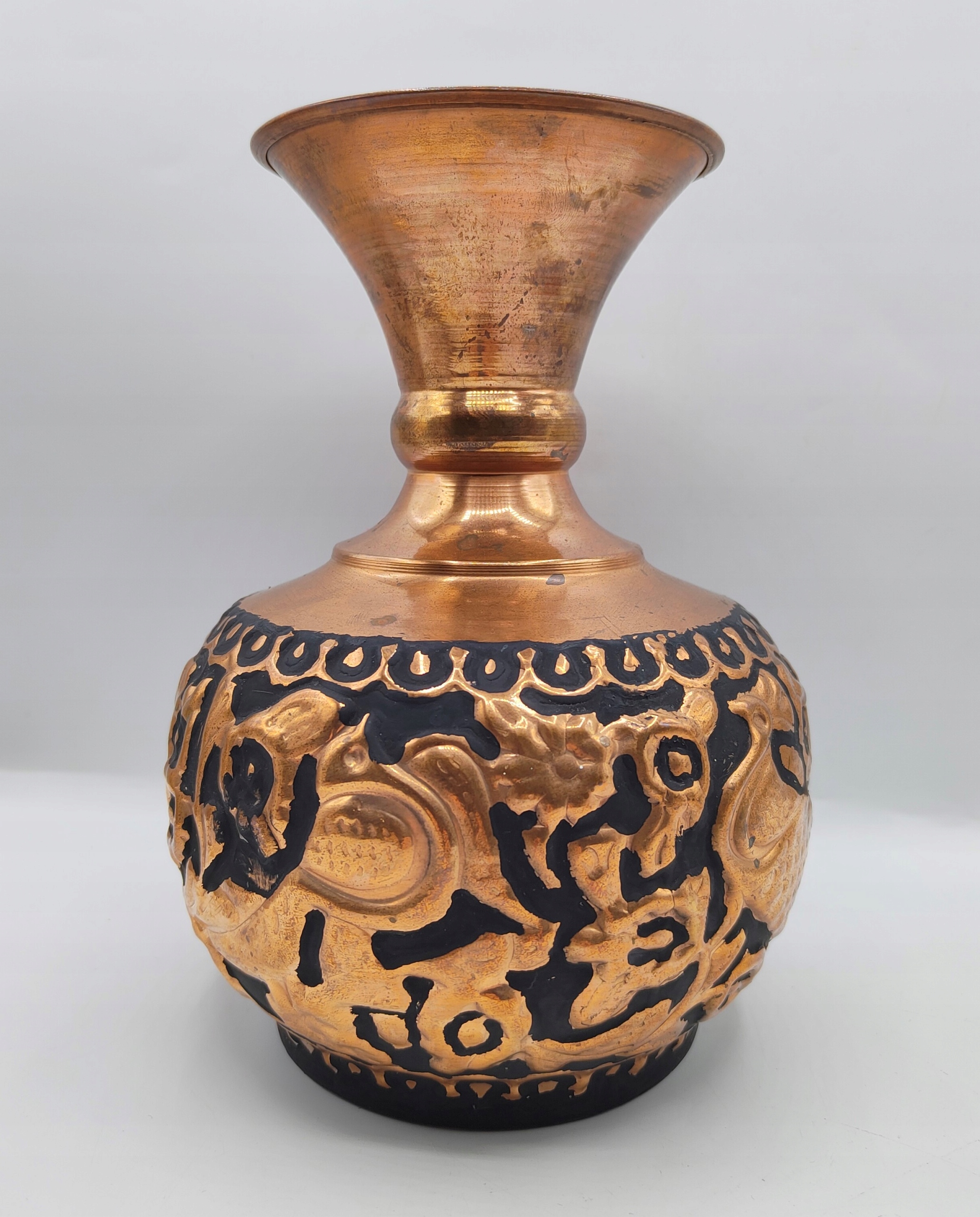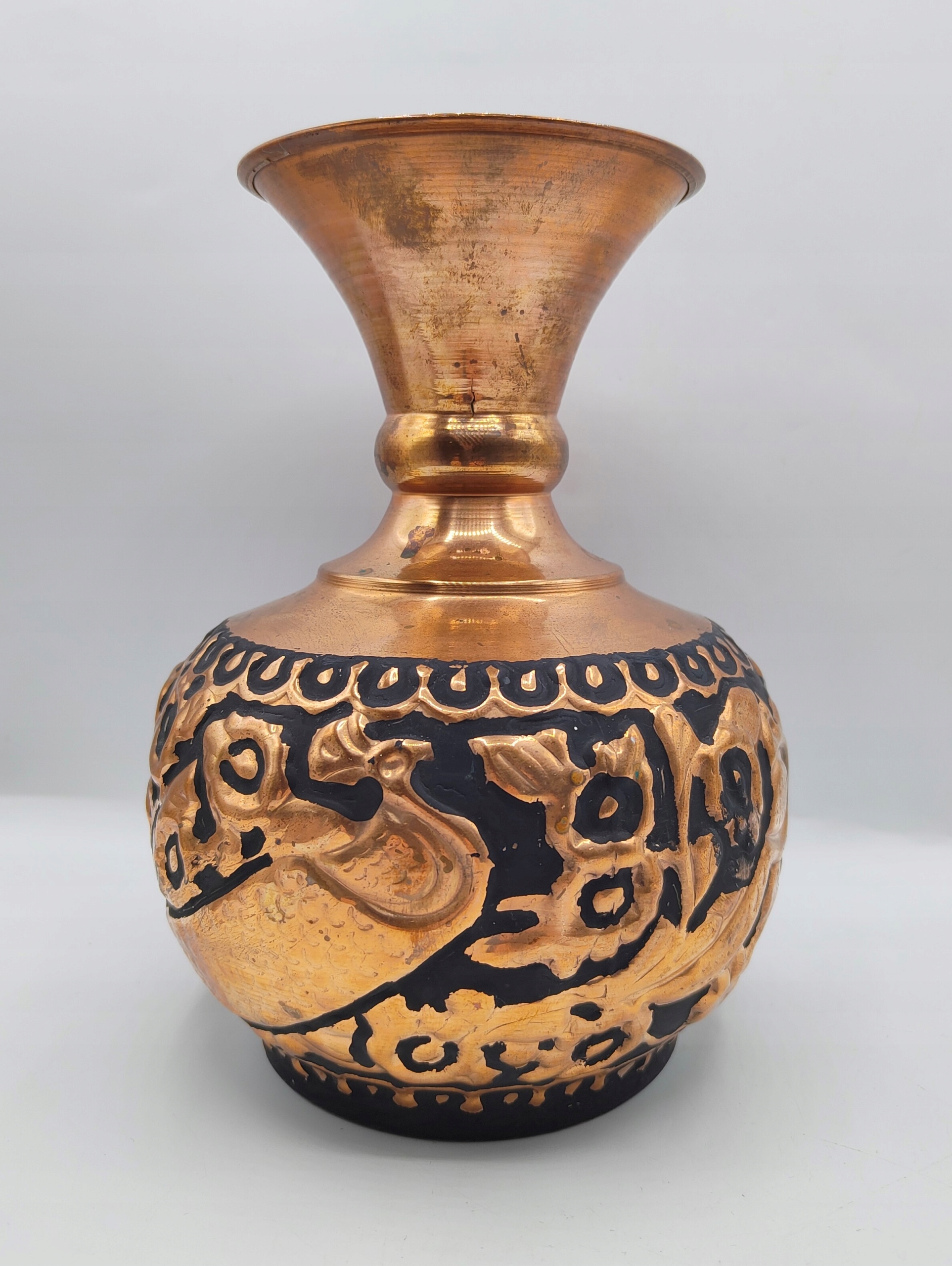 Старая медная ВАЗА - Птицы ПАВЛИН - ПРОТЕЧНАЯ емкость 2л.