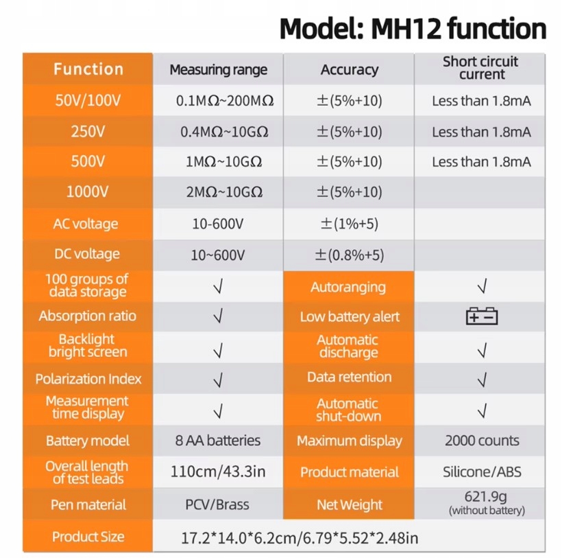 MIERNIK REZYSTANCJI IZOLACJI AUTOMAT ANENG MH12