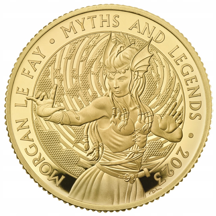 Мифы и легенды: Морган Ле Фэй 1/4 унции золото 2023 г. Золотая монета Proof представляет одного из персонажей легенд о короле Артуре, бесчисленных легенд, произведений литературы и фильмов. От викторианской эпохи до американской литературы 19 и 20 веков ее обычно изображали как злодейку, которая часто пытается причинить вред Артуру.