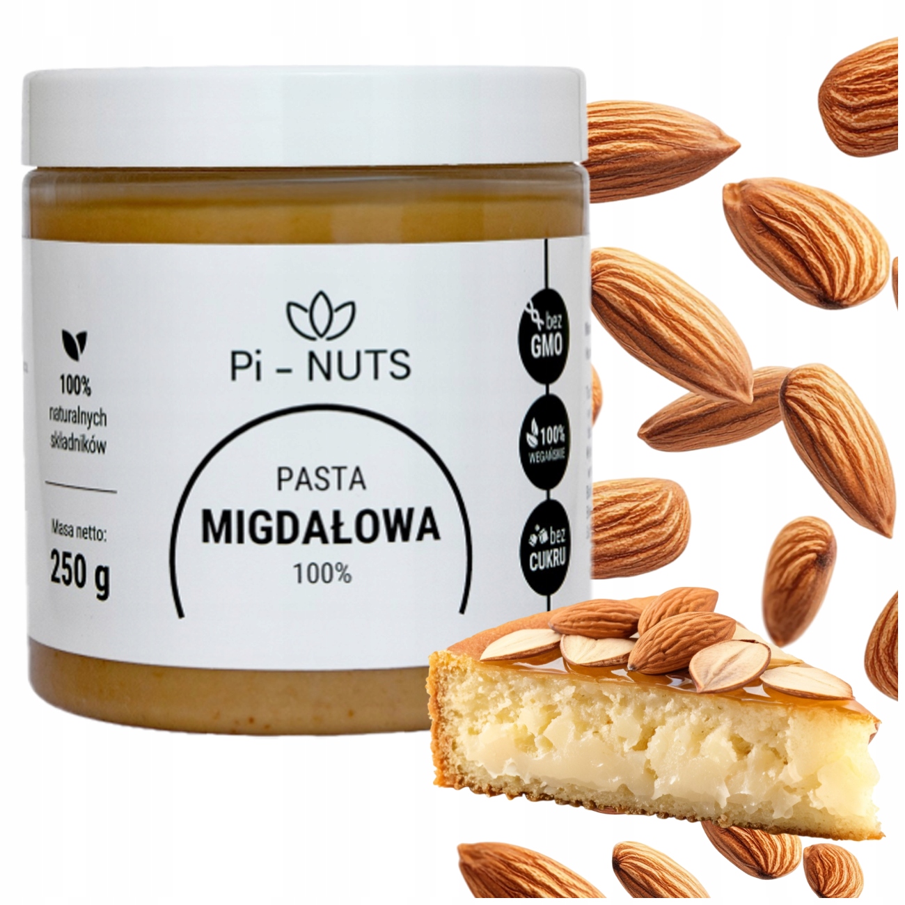 ➡ Благородное, ароматическое и 100% натуральное миндальное пасту b> без добавления сахара, соли, пальмового масла или консервантов.