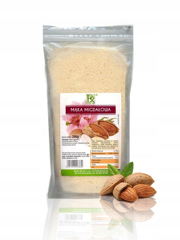 Мука Radix Миндальная 200 г изготовлена путем измельчения миндаля. Характеризуется слегка сладковатым вкусом и белым цветом. Это может быть прекрасной альтернативой традиционной муке, тем более что она идеально подходит для выпечки хлеба, булочек, булочек и тортов.