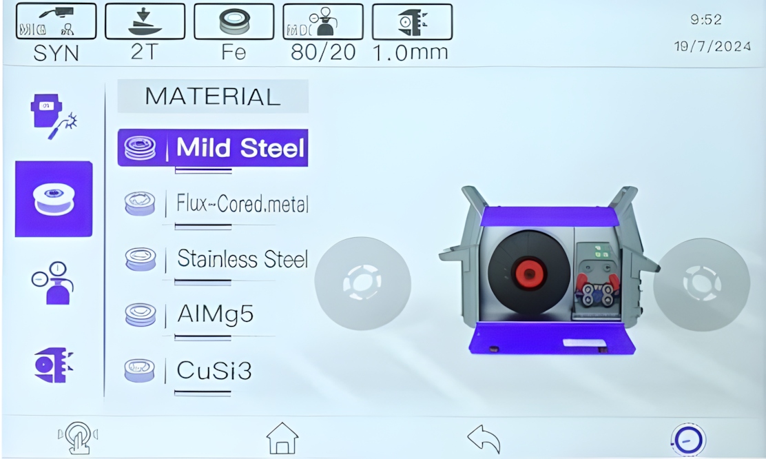 Быстрая синергетическая регулировка параметров сварки с помощью 5-дюймового сенсорного ЖК-дисплея делает аппарат очень простым в использовании. Просто установите толщину и тип свариваемого материала и начните сварку: интеллектуальная и автоматическая система управления сварочной дугой шаг за шагом подберет оптимальные параметры для каждой позиции сварки и для каждого материала. Пользователь также может вручную установить длину сварочной дуги и настроить внешний вид сварного шва в соответствии со своими потребностями. При использовании метода MIG/MAG мы можем выбрать режим кнопки на ручке: ТОЧЕЧНАЯ (точечная сварка), 2-ступенчатый (без блокировки), 4-ступенчатый (блокировка кнопки для длинных сварных швов), S2-ступенчатый и S4-ступенчатый.
