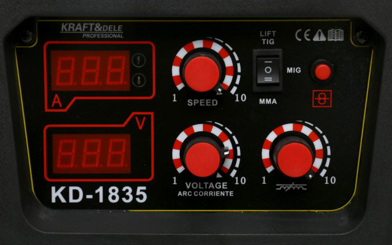 - Потребляемая мощность: 6,1 кВА (MIG) / 6,8 кВА (MMA)