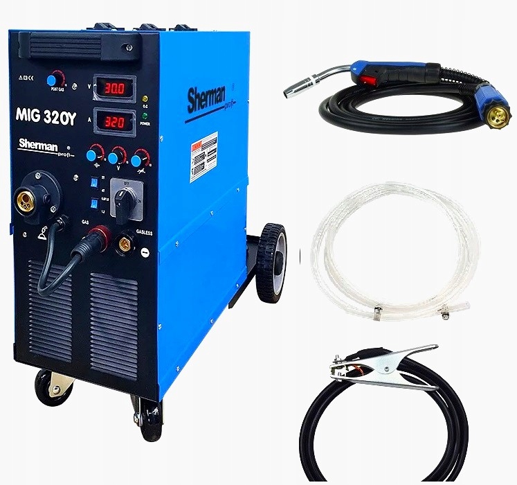 полуавтоматический сварщик mig 320y изготовлен в igbt . Для сварки стали и металла красочно. Устройство оснащено профессиональным проволочным фидером 4-Roll , имеет плавную регулировку тока сварки и скорость администрирования провода. Легкий и быстрый способ изменить поляризацию сварного напряжения позволяет сварению с помощью самообеспеченного провода без использования защитного газа. /b>, переключатель 2t/4t и регулирование индуктивности полезно при сварке тонких листов. Это позволяет сварка сваркой диаметром 0,8 - 1,6 мм. Работает с D200 (5 кг) и D300 (15 кг) проволочные катушки. Защитный газовый соединительный разъем обеспечивает использование быстрого муфта , которые облегчает и ускоряет сдвиг карничного газа . > За исключением вентилятора при низкой нагрузке сварочной машины приводит к снижению шума и улучшает комфорт сварки. MIG сварки с длиной 4M, 8 мм газового шланга и массового кабеля. Напряжение питания [v]: ac 3x400 50 Гц