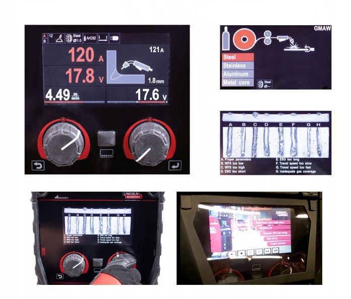 - Автоматические настройки - предварительно оптимальные параметры сварки. качества работы, установите флэш -память - отображайте материалы непосредственно на мониторе устройства