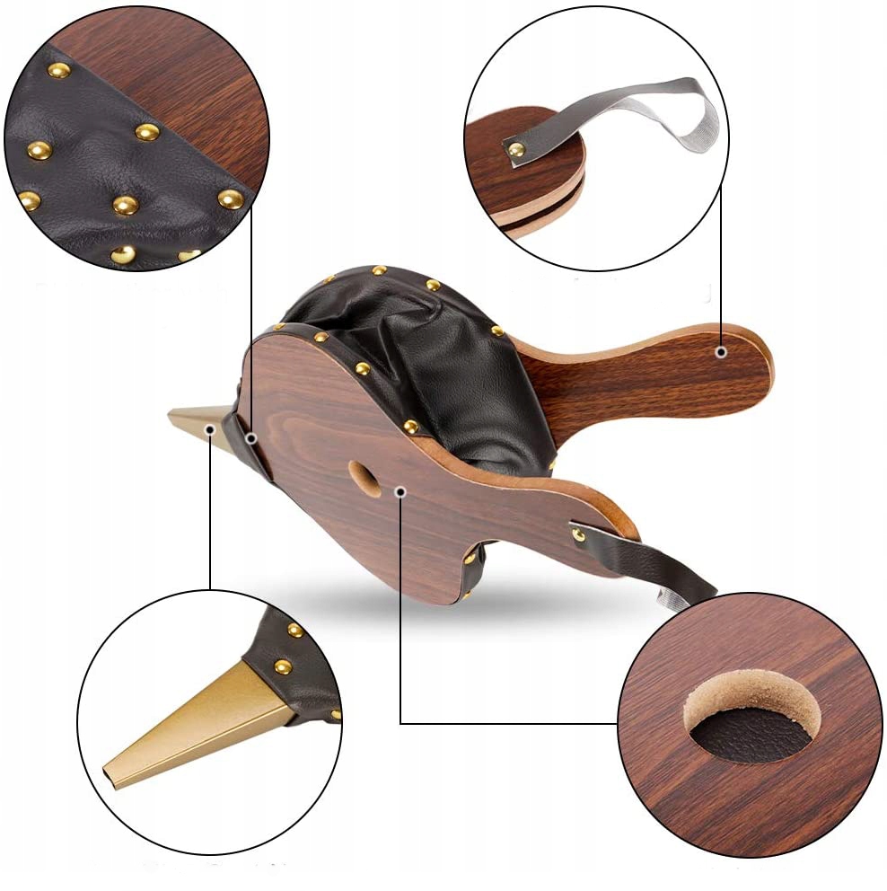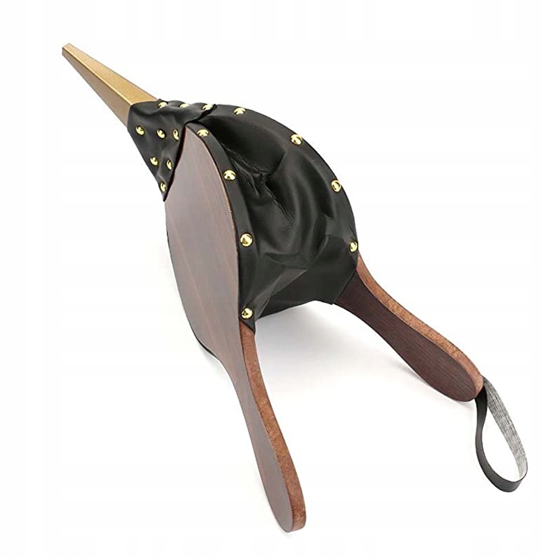 Рукоятка изготовлена из дерева и материал, похожий на кожу. Наконечник металлический, устойчивый к высоким температурам.