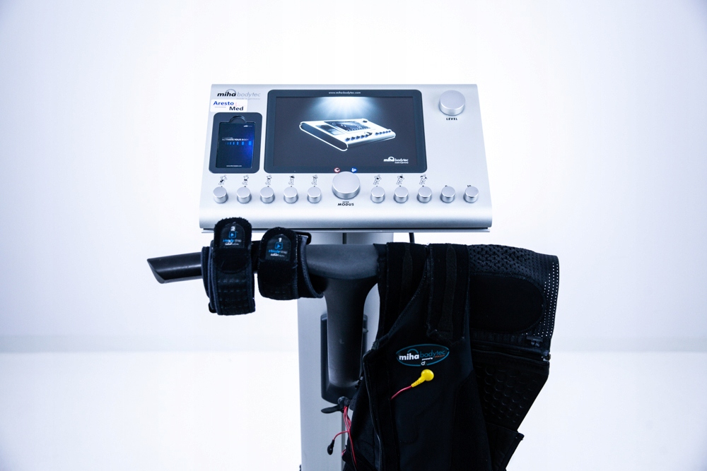 использовал систему электростимуляции мышц Miha Bodytec II с набором жилетов и ремней и т. Д.