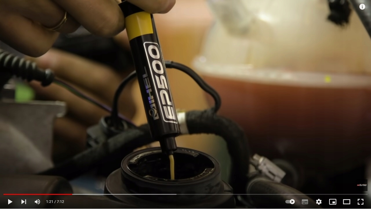 Шаг 2: Нанесите на моторное масло необходимое количество препарата, исходя из пробега автомобиля и количества масла в двигателе. заливная горловина. Важно, чтобы перед этим масло достигло рабочей температуры.