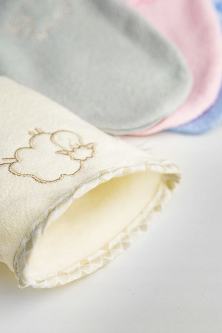 Мочалка незаменима в ежедневном уходе и при купании ребенка. Большая перчатка (ок. 23х14 см) идеальна для бережного мытья рук и рта, а также для безумных игр во время вечернего принятия ванны. Изделие изготовлено из высококачественного 100% хлопка FROTTE. Внимание ребенка непременно привлечет очаровательная овечка, вышитая по верху перчатки.