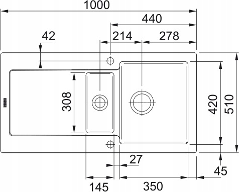 Вырез: левый-правый/встроенный 980 мм