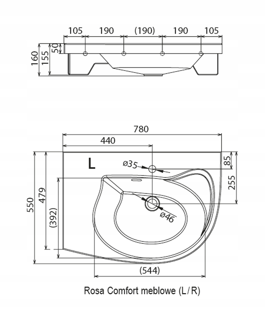 МЕБЕЛЬНАЯ РАКОВИНА 78 СМ ПРАВАЯ RAVAK ROSA COMFORT NP