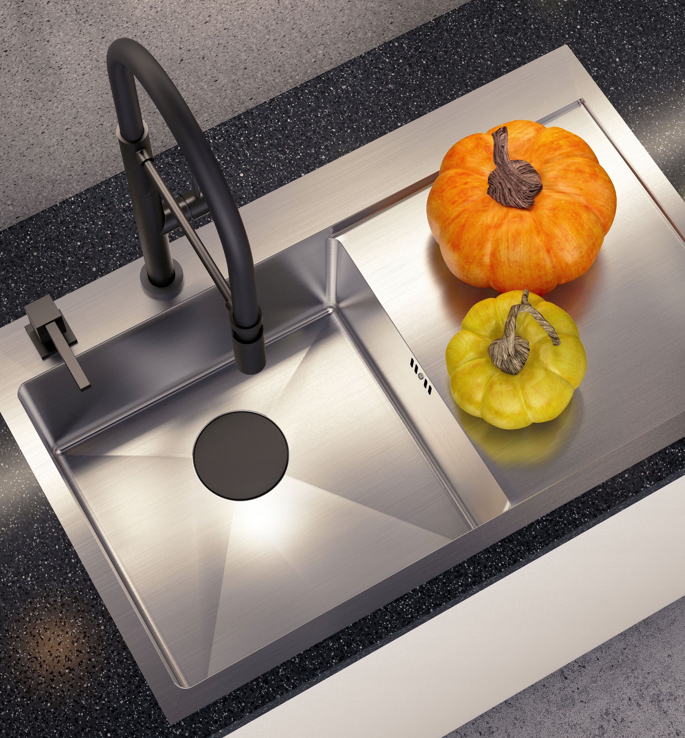 - Мойка оснащена благородным стальным сливом SteelQ в цвете, соответствующем цвету мойки.
