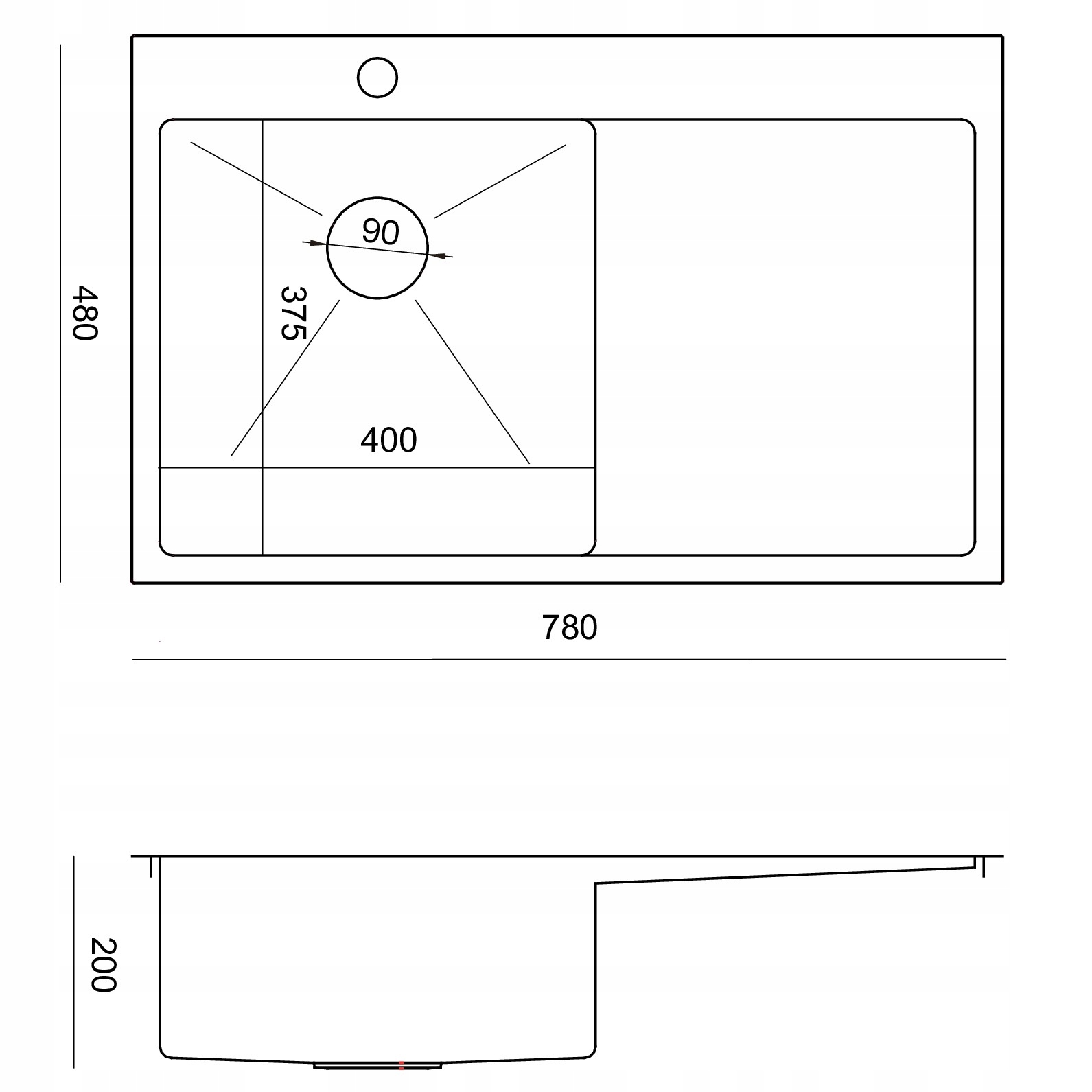 - Радиус угла чаши R 10, тиснение на чаше и узкие края придают мойке современный и элегантный вид.