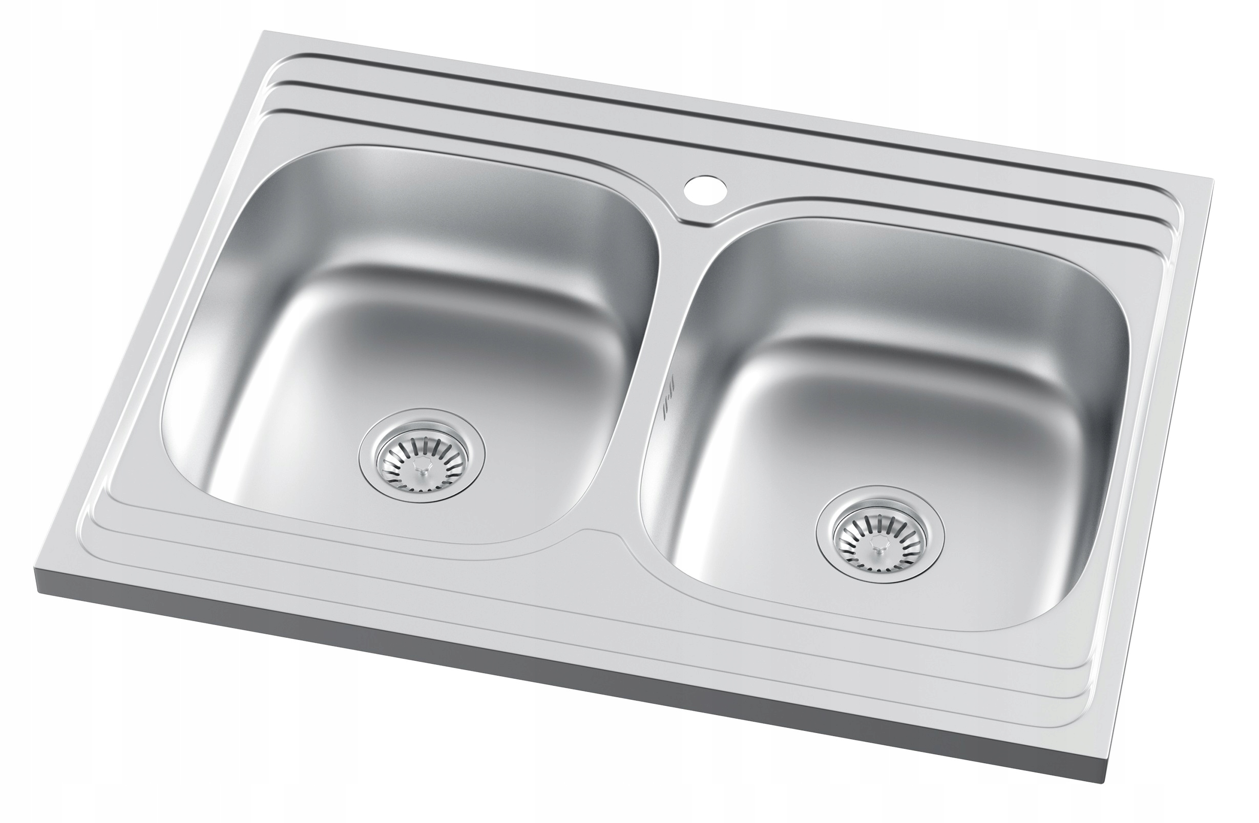 СТАЛЬНАЯ МОЙКА С ДВУМЯ КОРЗИНАМИ, САТИНОВЫЙ ХРОМ, СИФОННАЯ МОЙКА 80x60 С НАХОДОМ