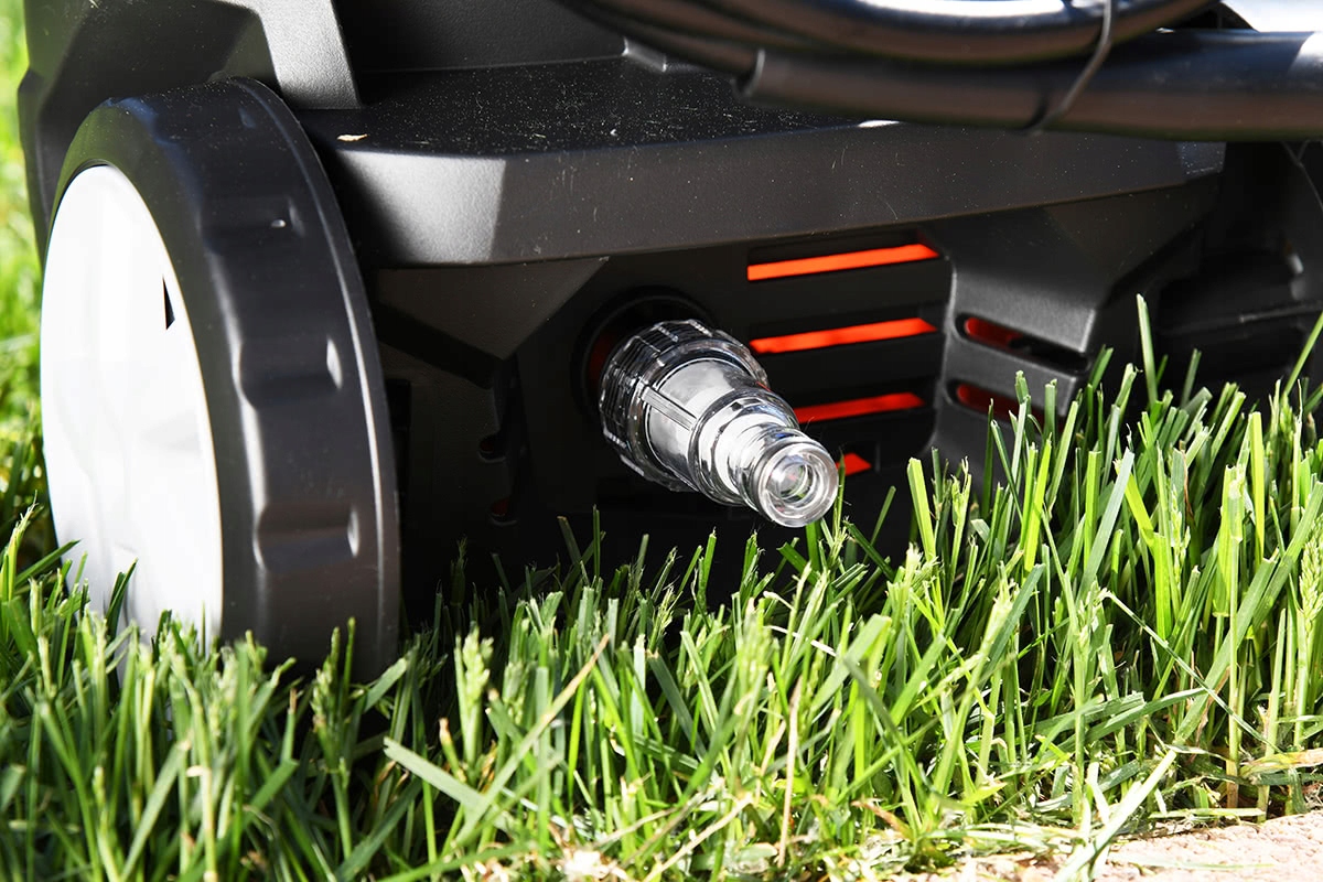 Специальная насадка с бачком для моющего средства позволяет быстро производить и наносить пену при небольшом расходе чистящего средства.