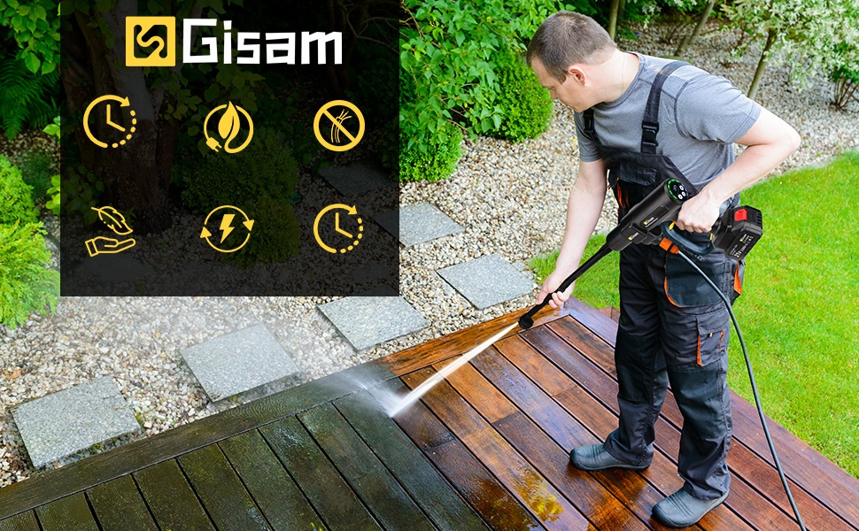 - Удобство беспроводной мойки высокого давления: Наша беспроводная мойка высокого давления дает вам максимальную свободу в беспроводном режиме, избавляя от путаницы шнуров и ограниченного радиуса действия. Почувствуйте неограниченную мобильность, легко очищая каждый уголок вашего открытого пространства.