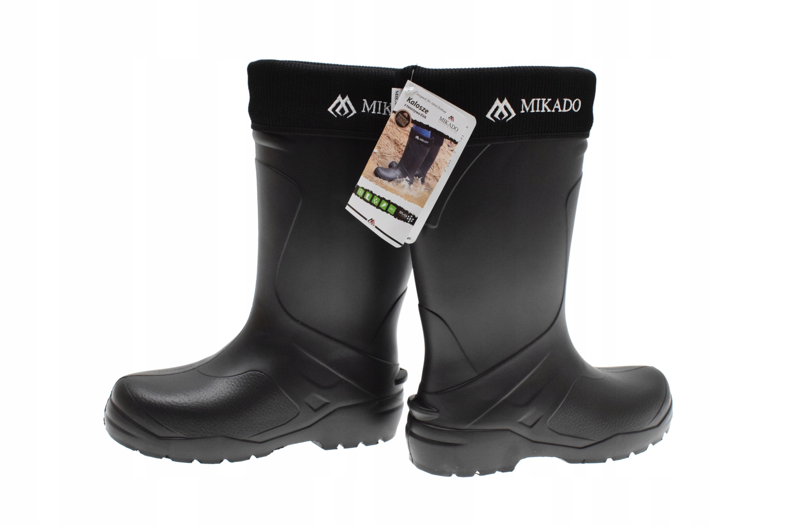 Предметом продажи являются утепленные зимние резиновые сапоги от МИКАДО, идеальная обувь для рыболовов, охотников и грибников, чрезвычайно легкая, изготовленная из комбинации пены ЭВА с воротником вверху и практичная кулиска,