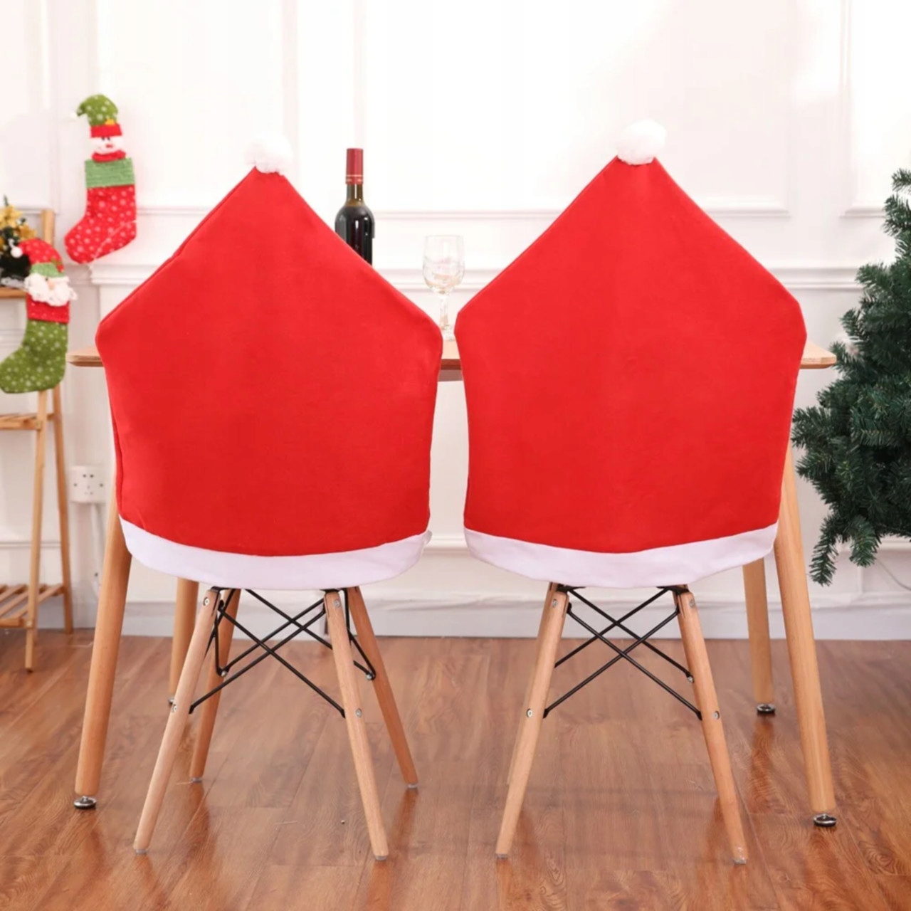 обложка на задней части стула Клауса - Теперь вы можете создать уникальную, праздничную атмосферу. Ваш дом получит магию Рождества, и гости будут удивлены украшением. Обложка в виде шляпы Санты универсальна и подходит для большинства стульев.