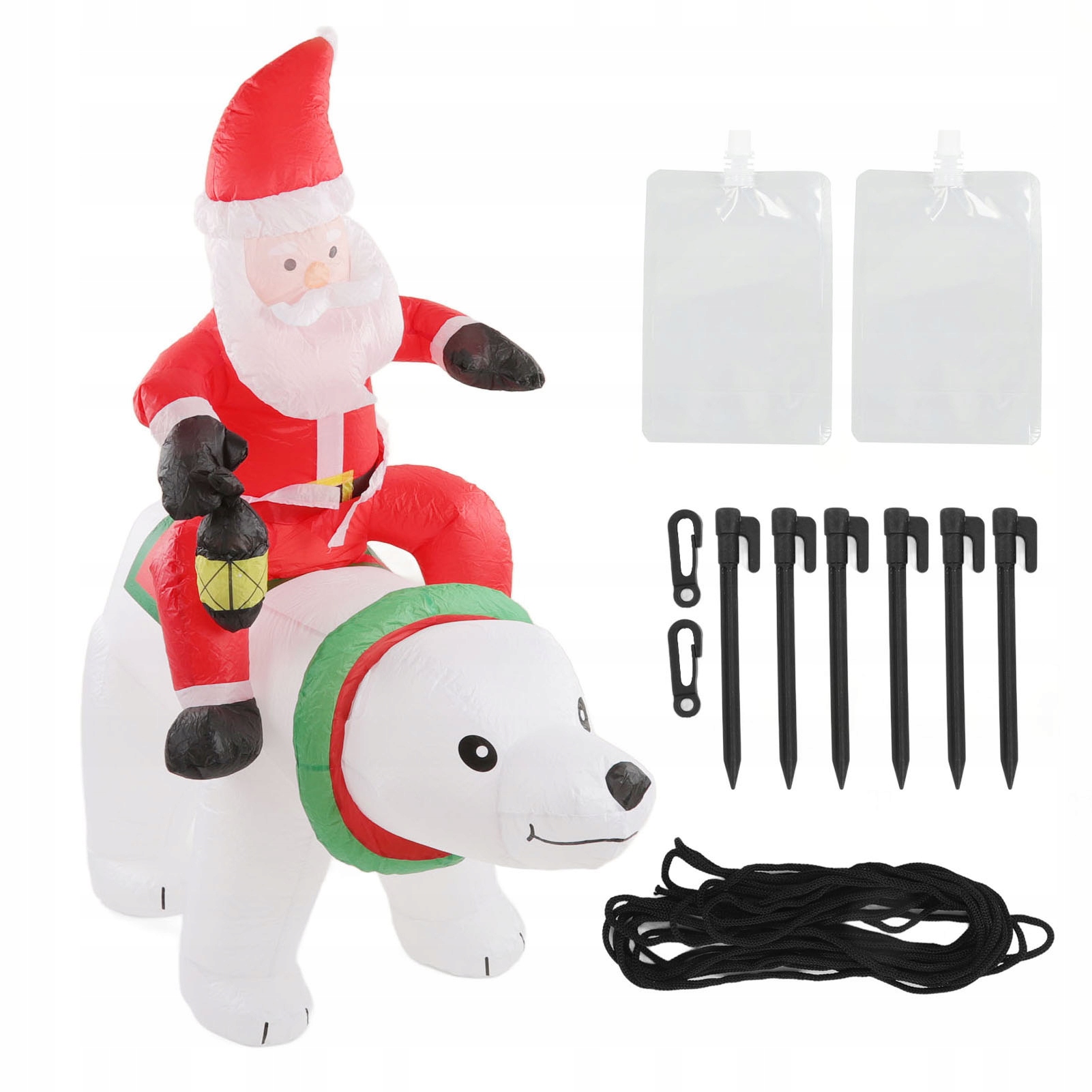 2. [Стабилизирующие аксессуары] Этот надувный медведь Санта также оснащен заземляющими дюбелями, пряжками с крючками, поводками и аксессуарами для прикрепления пакета воды, которые обеспечивают дополнительную стабильность, чтобы он не взорвал его даже при сильных ветрах.