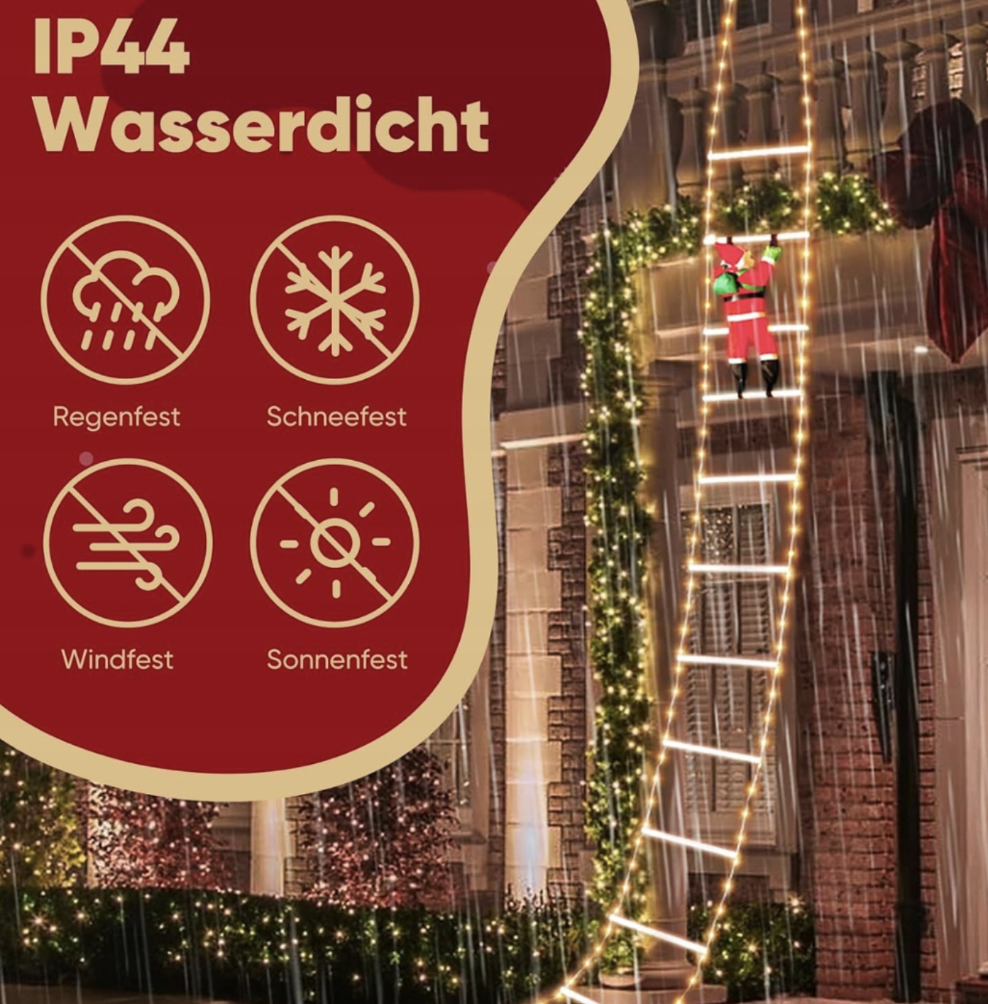 Светодиодные рождественские огни с Санта -Клаусом на лестнице - 3M Рождественское освещение с таймером, белый теплый, 8 мод, водонепроницаемый h1>