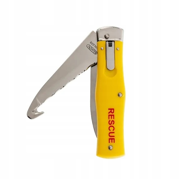 Нож СПАСАТЕЛЬ - автоматический нож от компании Миков. Одним из многих преимуществ ножа RESCUE является то, что он основан на концепции ножа PREDATOR и его можно быстро открыть одной рукой. Нож имеет лезвие из нержавеющей стали 420, спасательное лезвие также из стали 420, имеющее специальное лезвие для резки нестандартных материалов (полосы, резина, более слабая проволока) и крючок для безопасного перерезания ремня безопасности в транспортное средство.